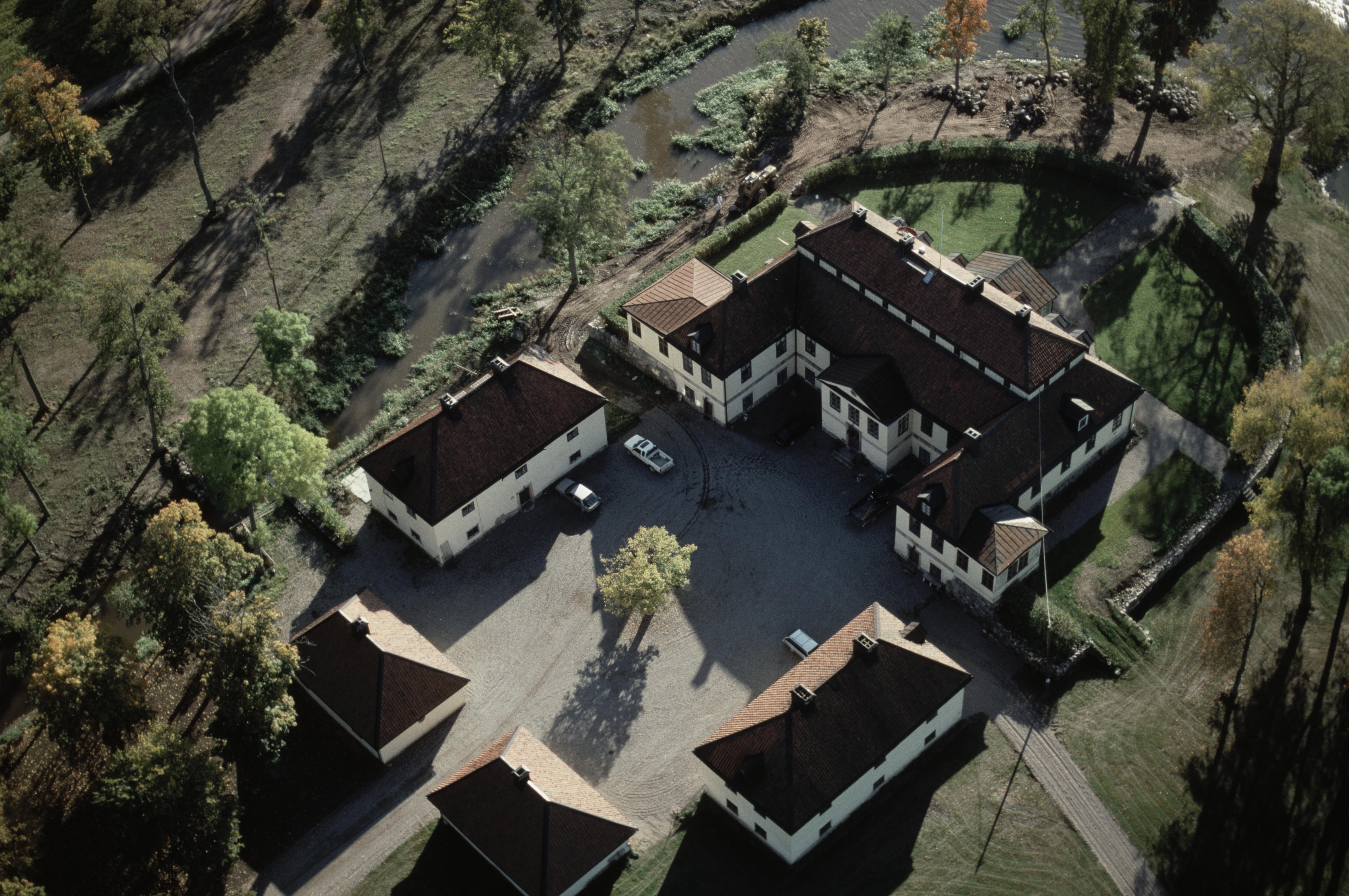 Beskrivning: Gimmersta herrgård RAÄnr Julita 25:1 vid Aspån och sjön Öljaren (åns utlopp i sjön vid herrgården). Bilden är tagen mot (väderstreck): S