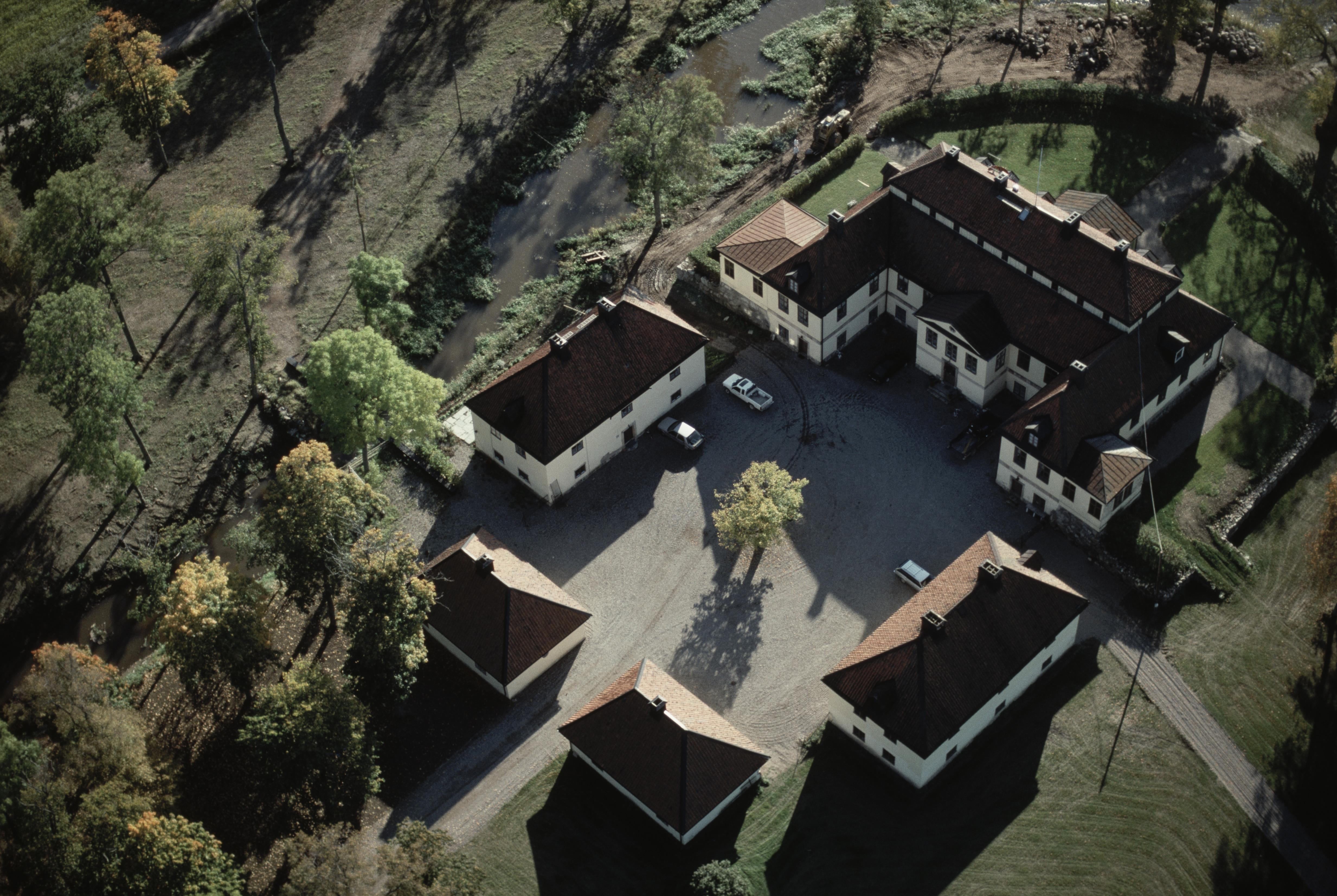 Beskrivning: Gimmersta herrgård RAÄnr Julita 25:1 vid Aspån och sjön Öljaren (åns utlopp i sjön vid herrgården). Bilden är tagen mot (väderstreck): S