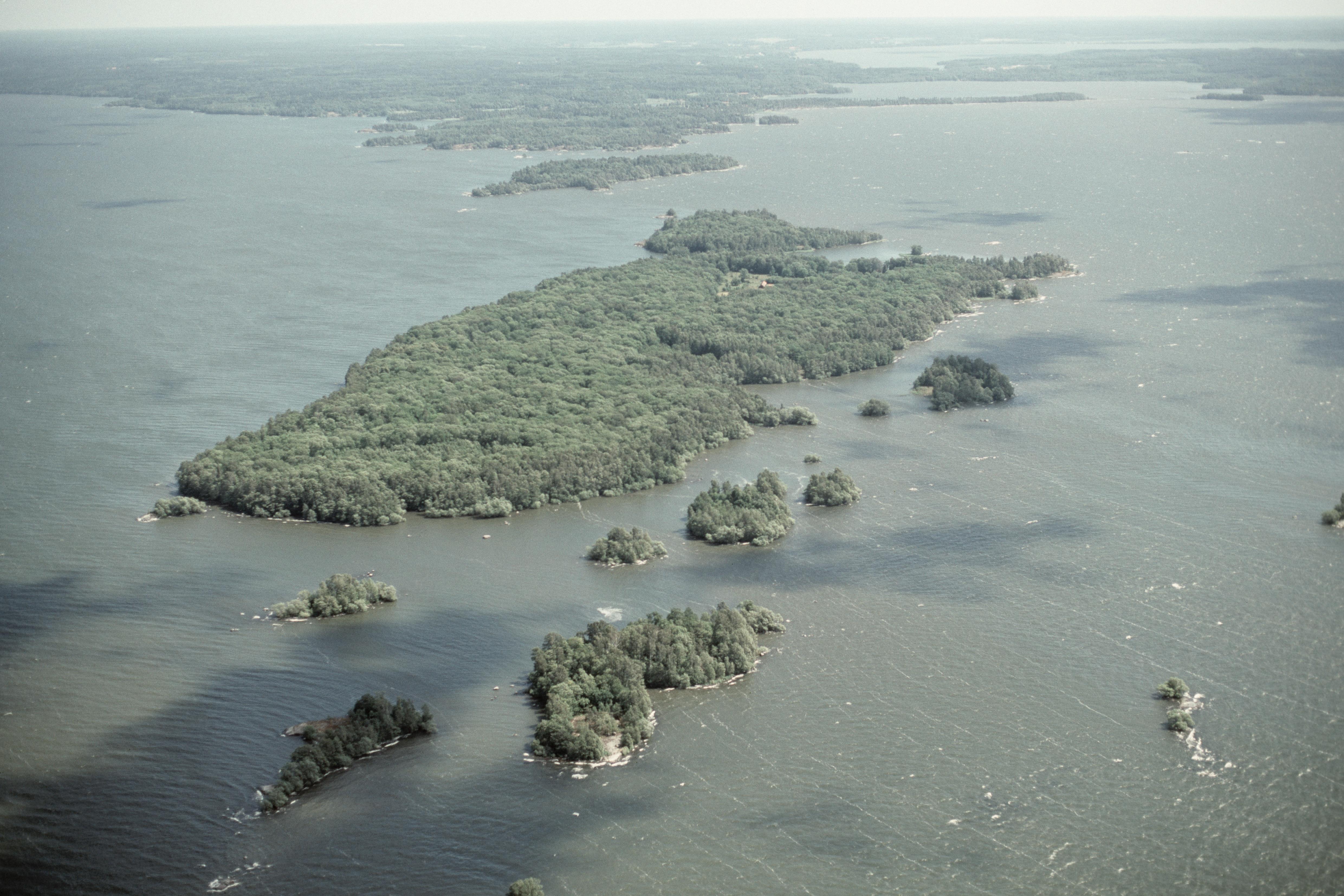 Beskrivning: Tåkenön (skrivs även Tockenön) är en ö i södra delen av sjön Hjälmaren med f.d. slåttermarker till Julita herrgård. Ön är sedan gammalt bebyggd med ett torp. I bildens övre del Lillön och Väsboön. Bilden är tagen mot (väderstreck): Ö