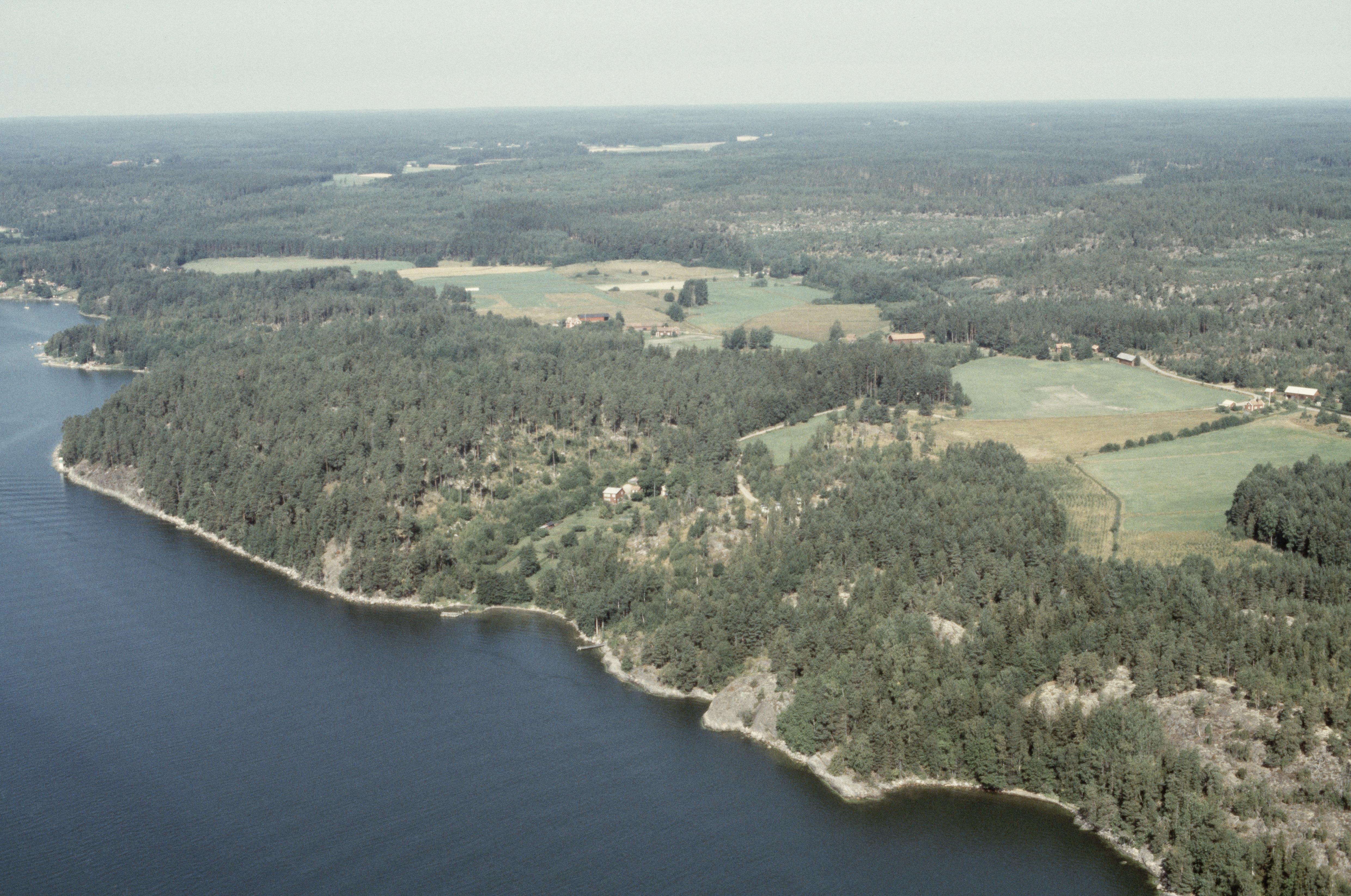 Beskrivning: Bråvikenbranten (kallas även Kolmårdsbranten) vid Bråviken. Vid bildens mitt Katrinelund och boplats RAÄnr Kvarsebo 33:1. Uppe till vänster Karlslund och Djupvik, uppe till höger Stormbäcken. Bilden är tagen mot (väderstreck): NV