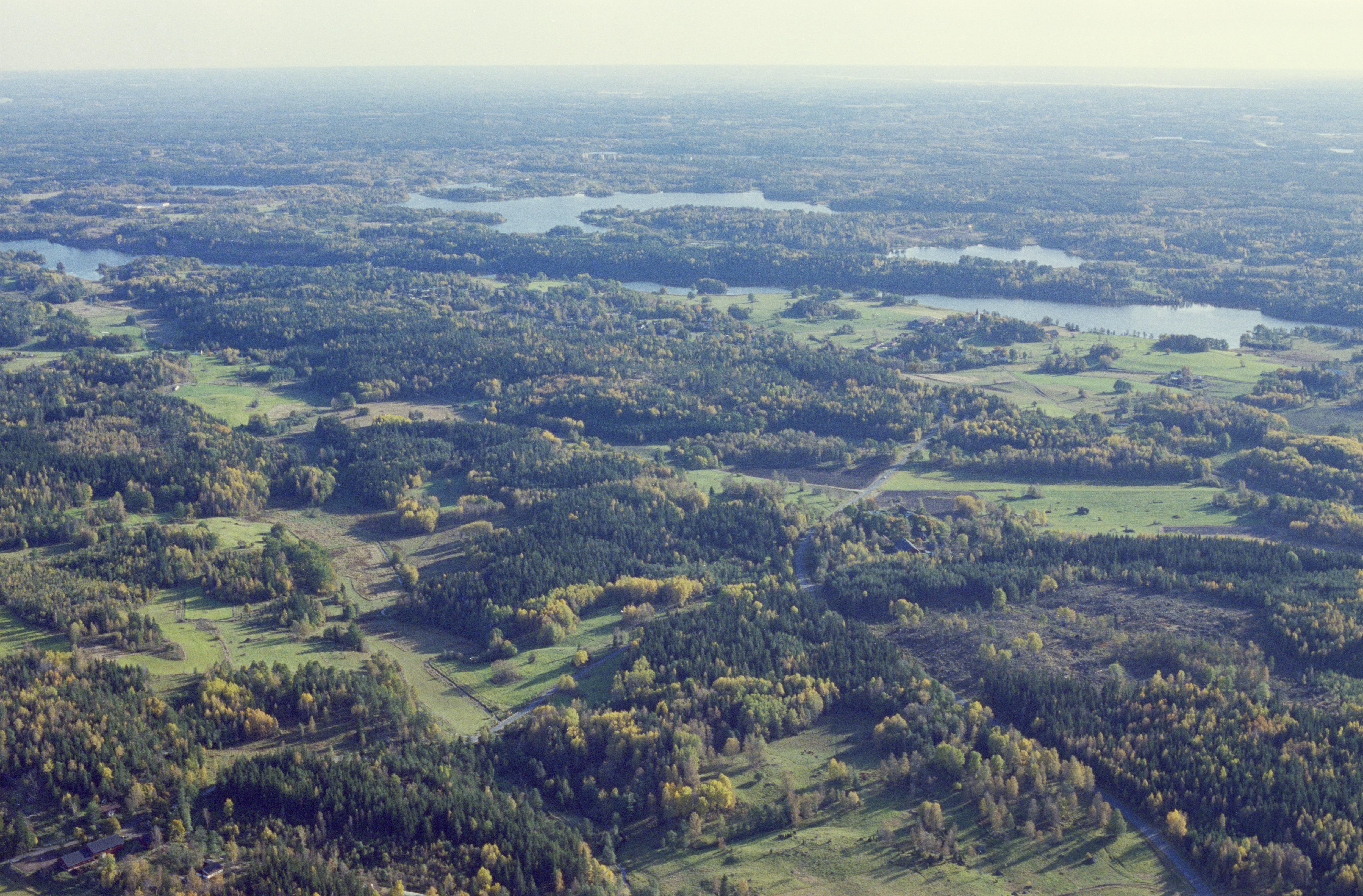 Beskrivning: Vid bildens mitt område med Turebergsgrottan RAÄnr Mellösa 32:1 och fångstgrop Mellösa 37:1 m.fl. Till höger om bildens mitt Mellösa kyrka vid Mellösasjön. Bilden är tagen mot (väderstreck): S