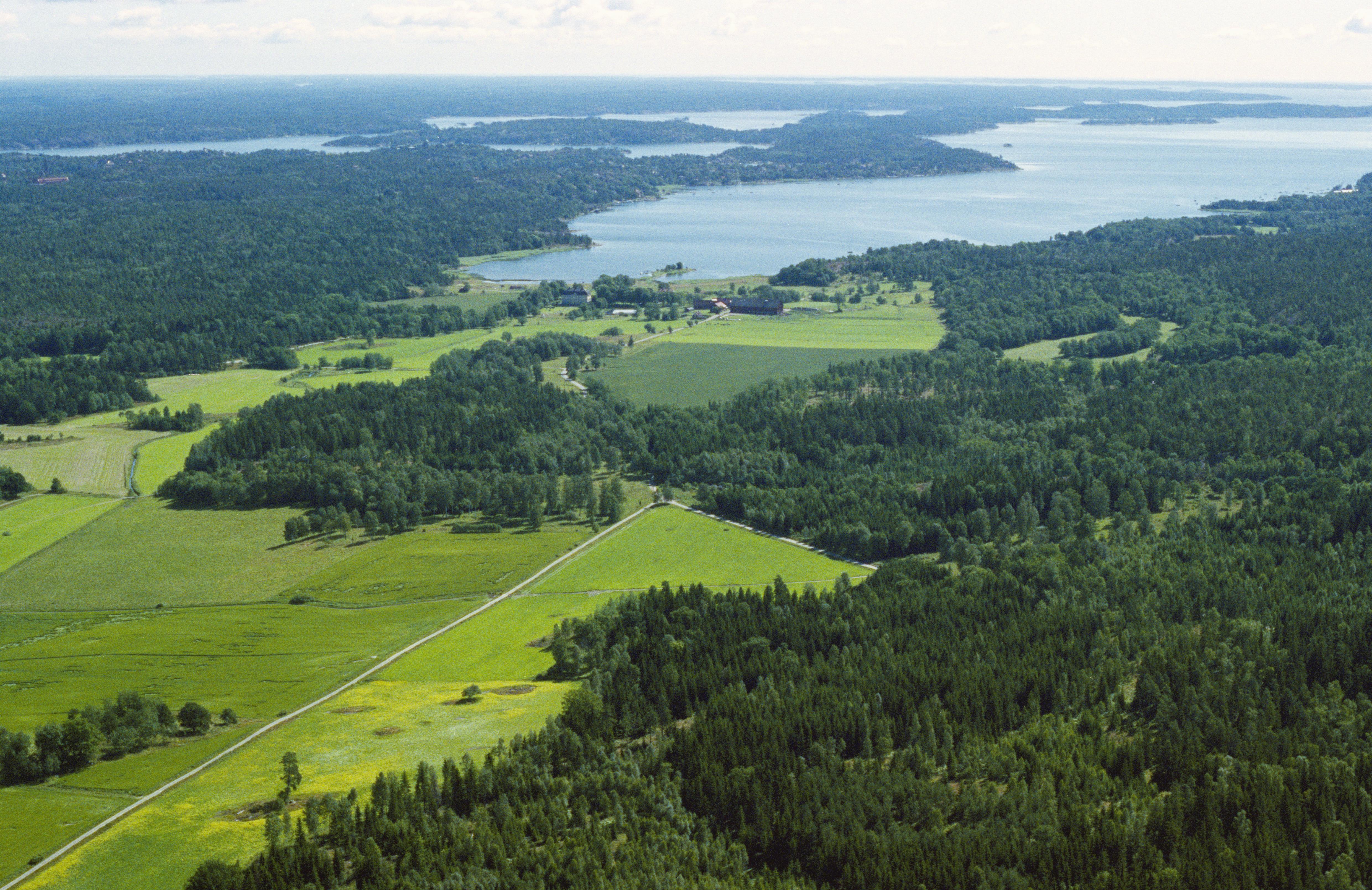 Beskrivning: Överby gamla tomt RAÄnr Nacka 33:1, gravfält Nacka 10:1 och gravhög Nacka 9:1-2 m.fl. I bildens övre del Erstaviks herrgård vid Erstaviken. Bilden är tagen mot (väderstreck): Ö