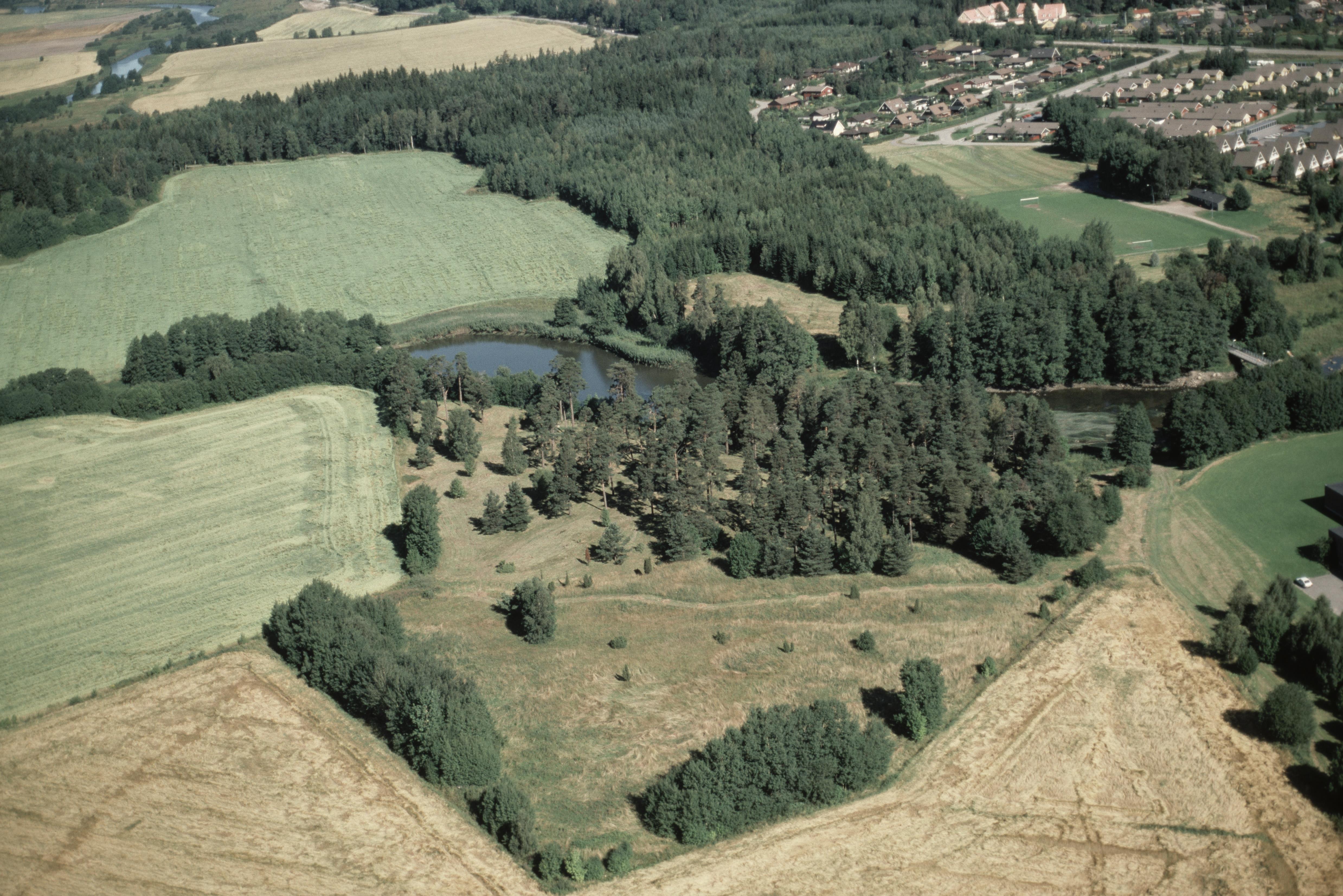 Beskrivning: Nyköpingsån markerar gränsen mellan socknen Nyköping och Helgona (i bildens övre del). Vid bildens mitt gravfält Släbro hage RAÄnr Nyköping 5:1. Oppebyskolan nere till höger. Bilden är tagen mot (väderstreck): NNV