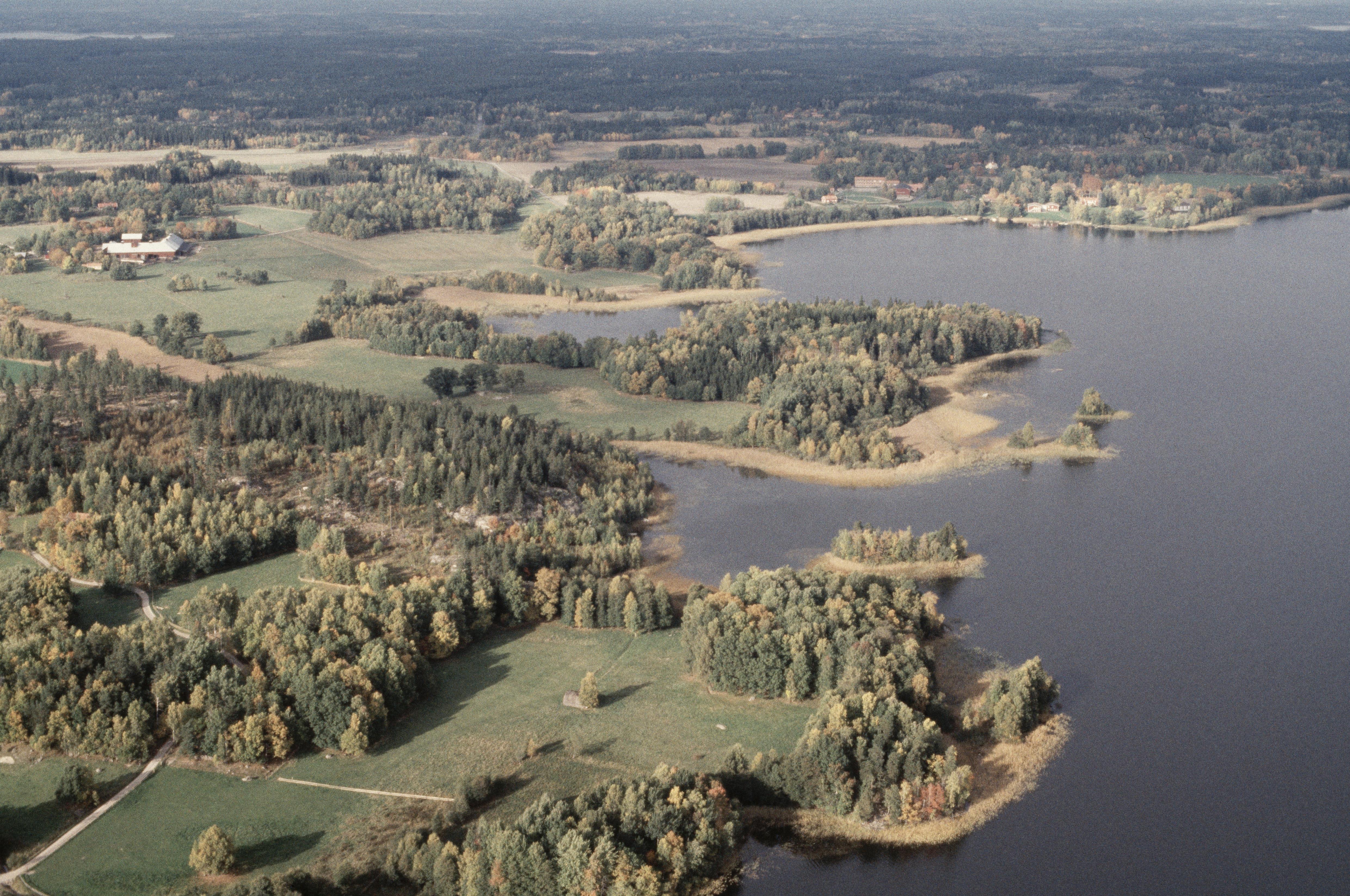 Beskrivning: Näshultasjön. Fornborg RAÄnr Näshulta 25:1 på Barrön nere till vänster. Sibirien och Hedensö Ladugård / herrgård uppe till vänster, Killingnäset vid bildens mitt. Uppe till höger Näshulta kyrka. Bilden är tagen mot (väderstreck): NNO