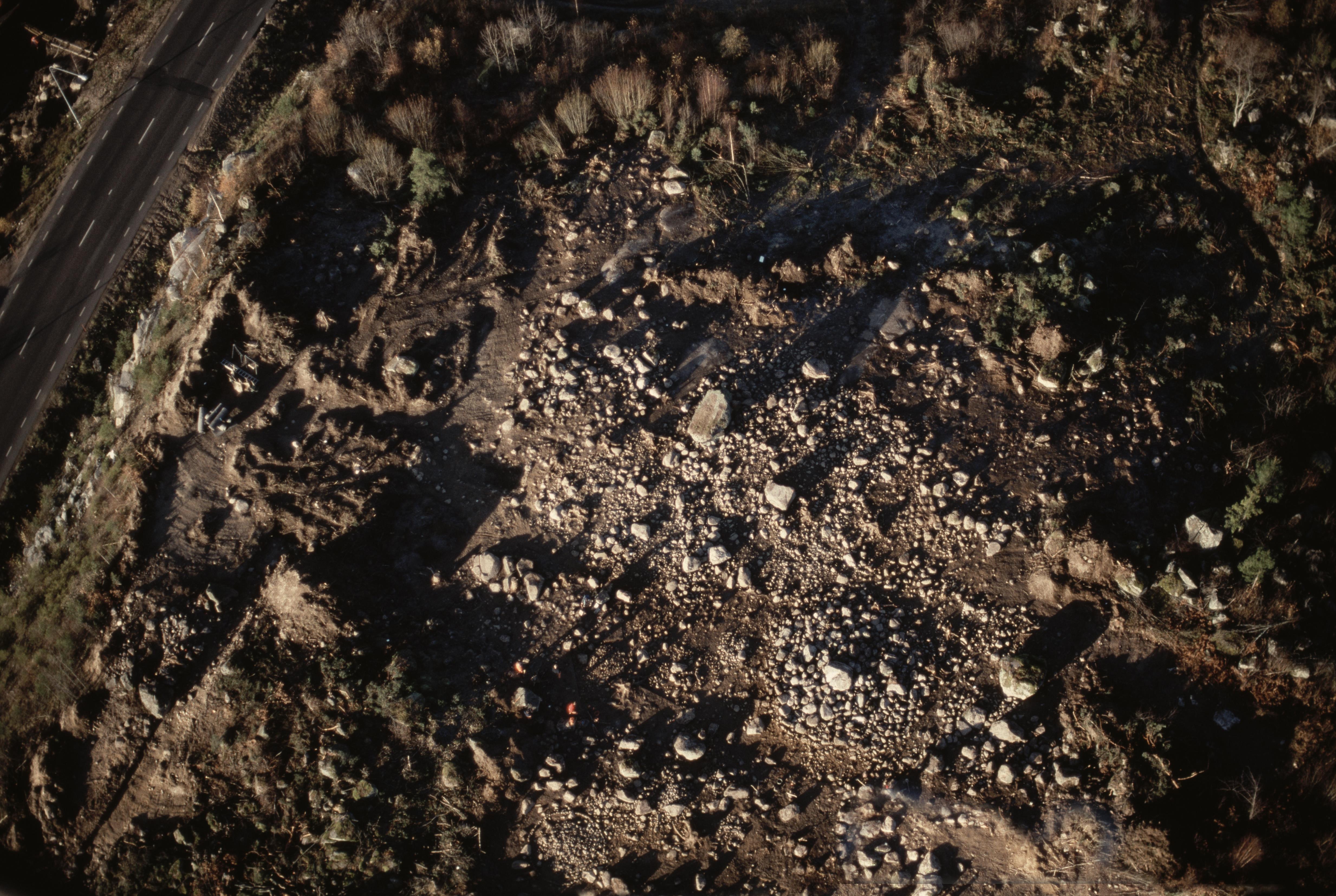 Beskrivning: Folkesta i nordvästra delen av tätorten Hällbybrunn. Vid bildens mitt arkeologisk undersökning av grav- och boplats RAÄnr Torshälla 145:1 innan nybyggnation. Bilden är tagen mot (väderstreck): VNV