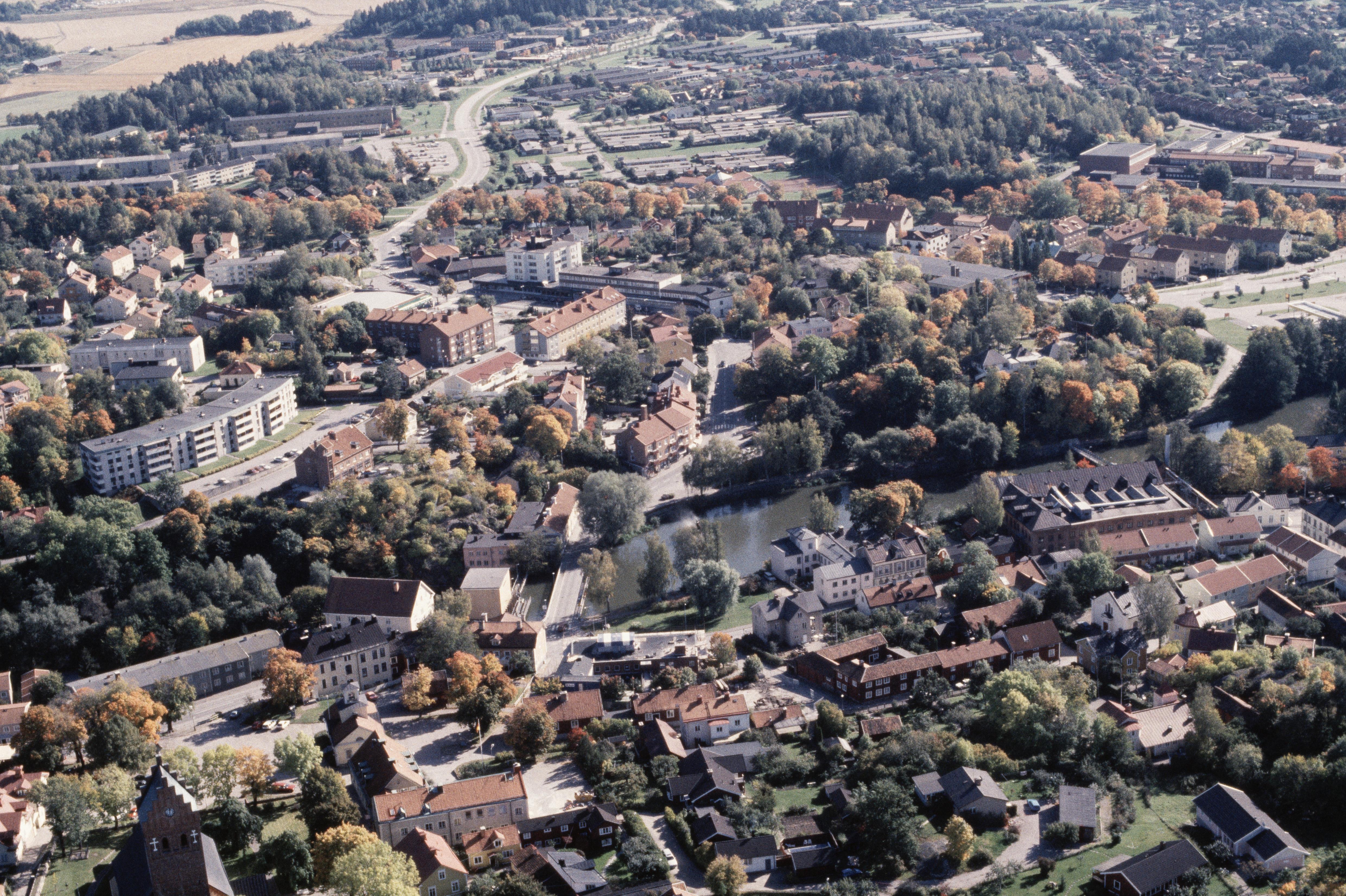 Beskrivning: Torshälla tätort. Eskilstunaån. Borgruin RAÄnr Torshälla 71:1 i bildens övre del. I bildens nedre del stadslager RAÄnr Torshälla 95:1. Bilden är tagen mot (väderstreck): Ö