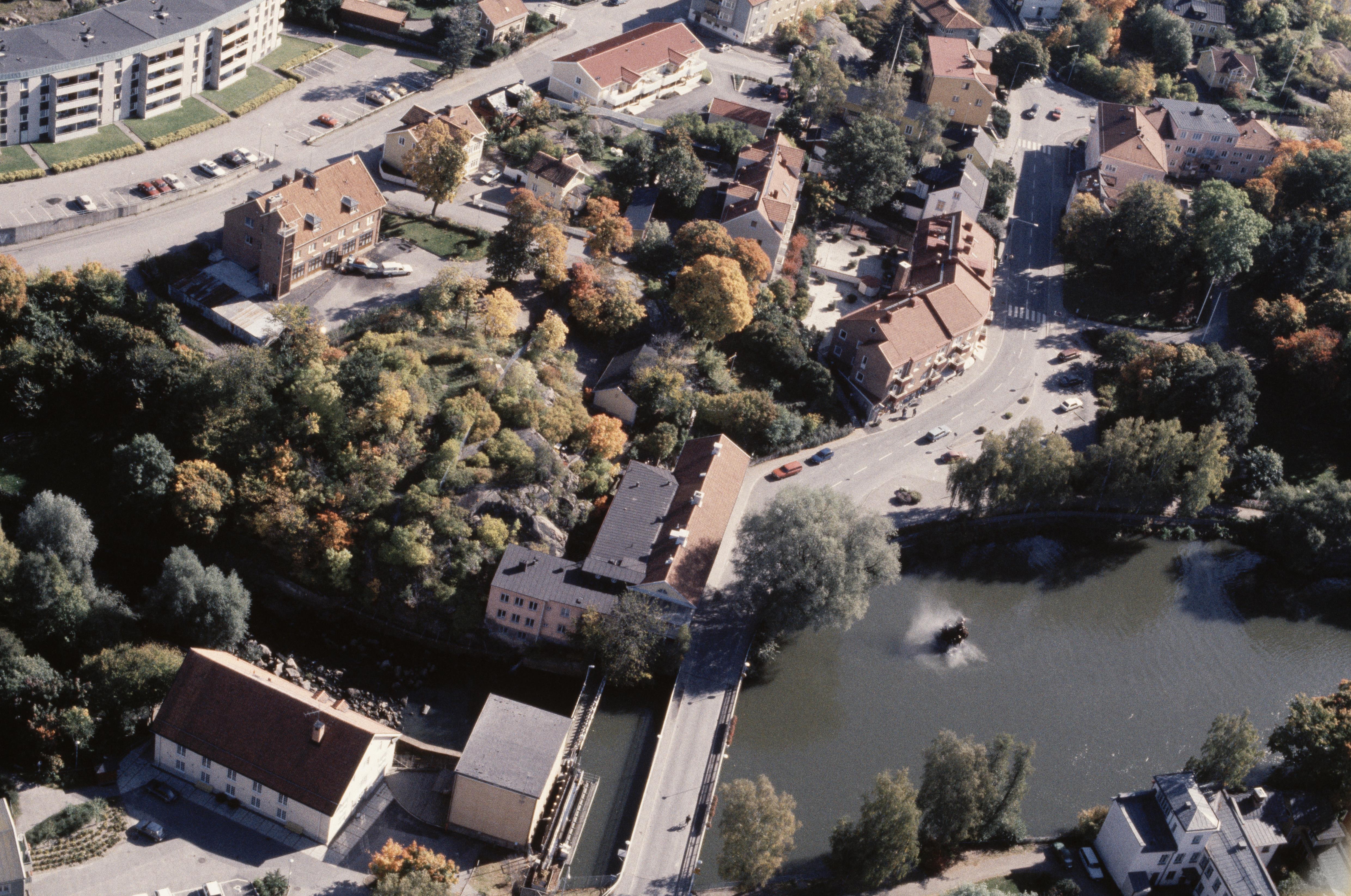Beskrivning: Torshälla tätort. Eskilstunaån. Borgruin RAÄnr Torshälla 71:1 i bildens övre del. I bildens nedre del stadslager RAÄnr Torshälla 95:1. Bilden är tagen mot (väderstreck): Ö