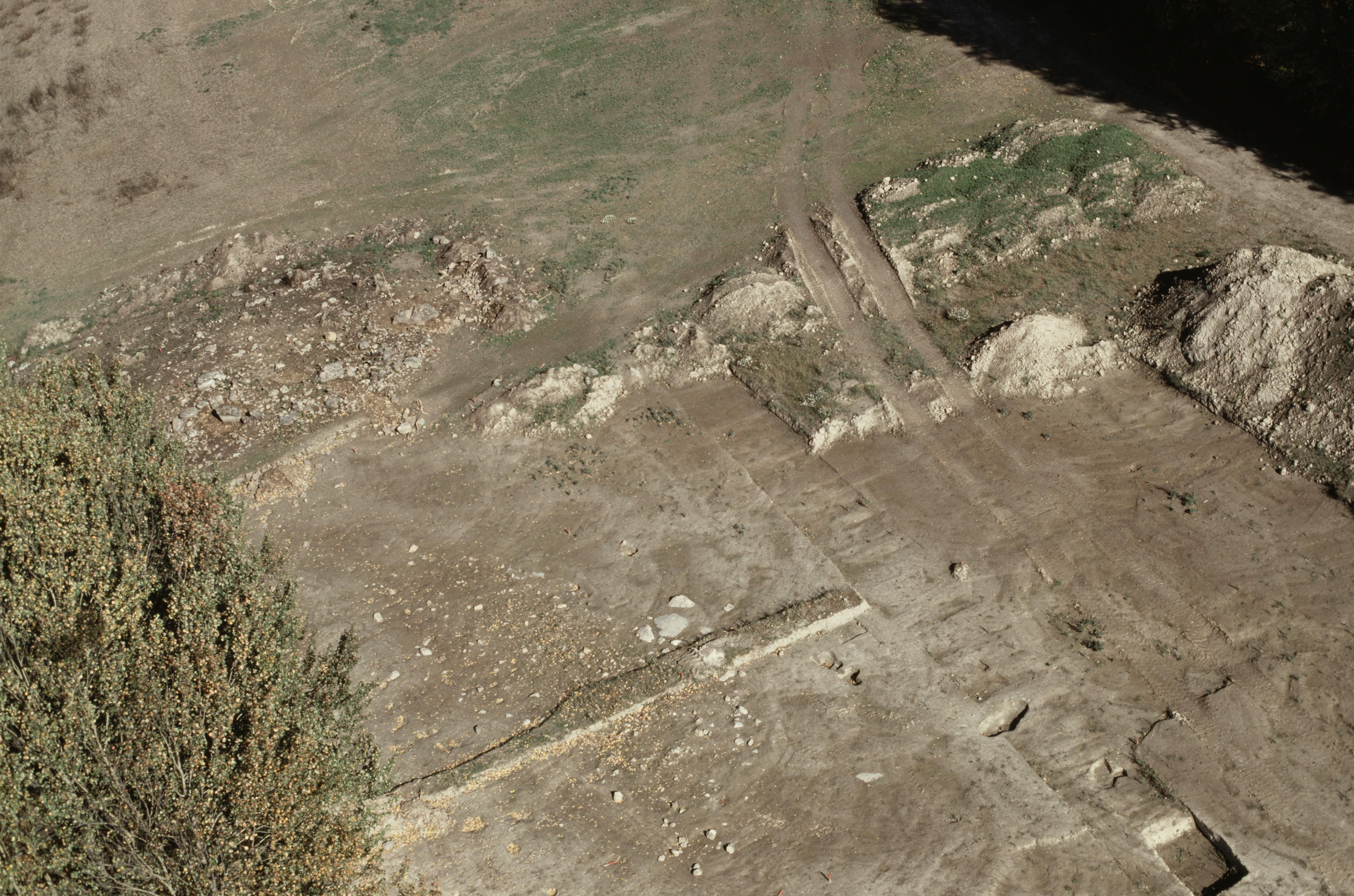 Beskrivning: Arkeologisk undersökning innan järnvägen Grödingebanan byggs vid Kvedesta by. Fornborg Tveta 44:1 vid Rådjursbacken. Bilden är tagen mot (väderstreck): NO