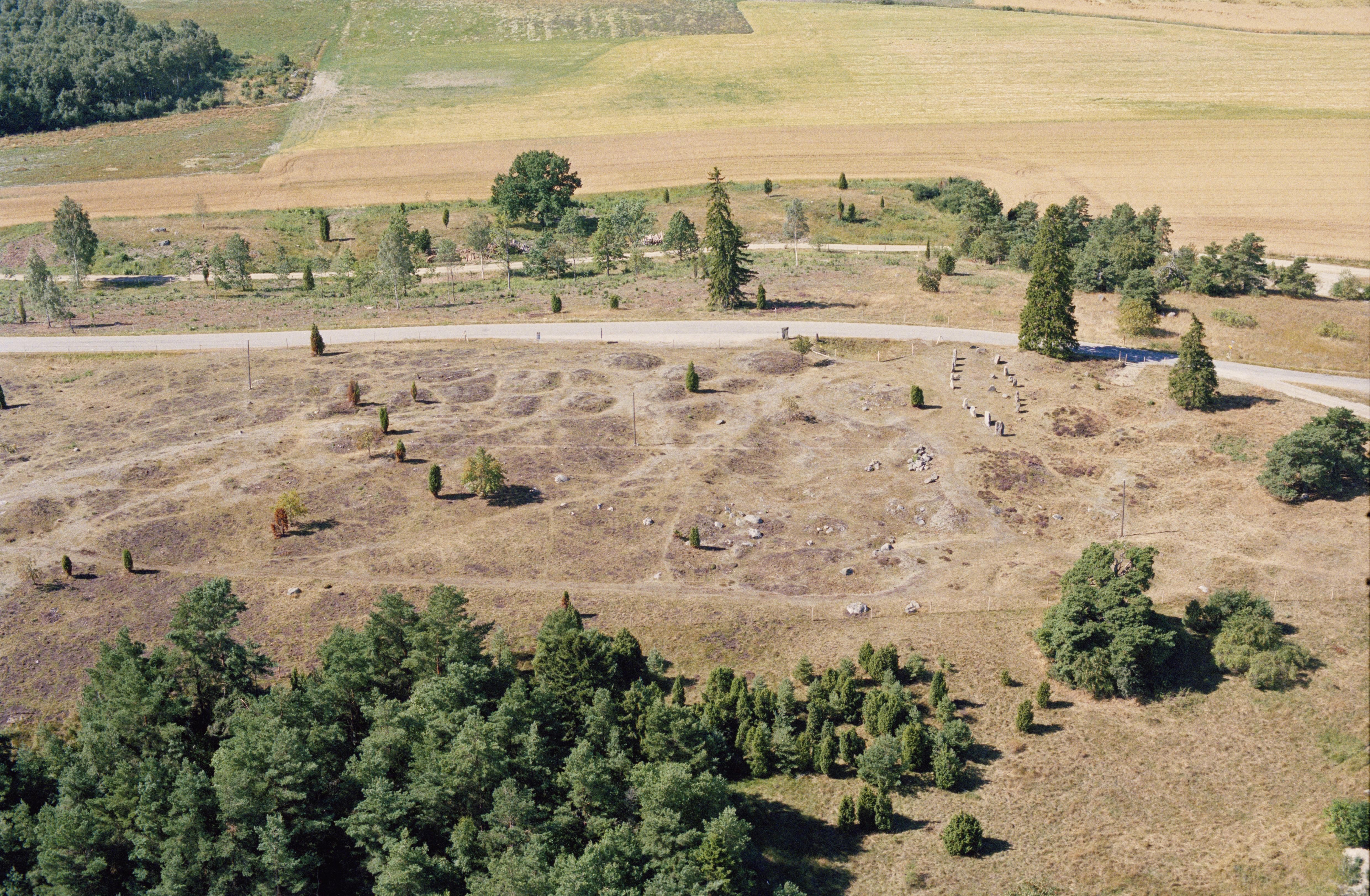 Beskrivning: Åsa gravfält RAÄnr Ytterselö 123:1 med bl.a. skeppssättning, runristning RAÄnr Ytterselö 123:2 och hällristning RAÄnr Ytterselö 304. Bilden är tagen mot (väderstreck): VSV