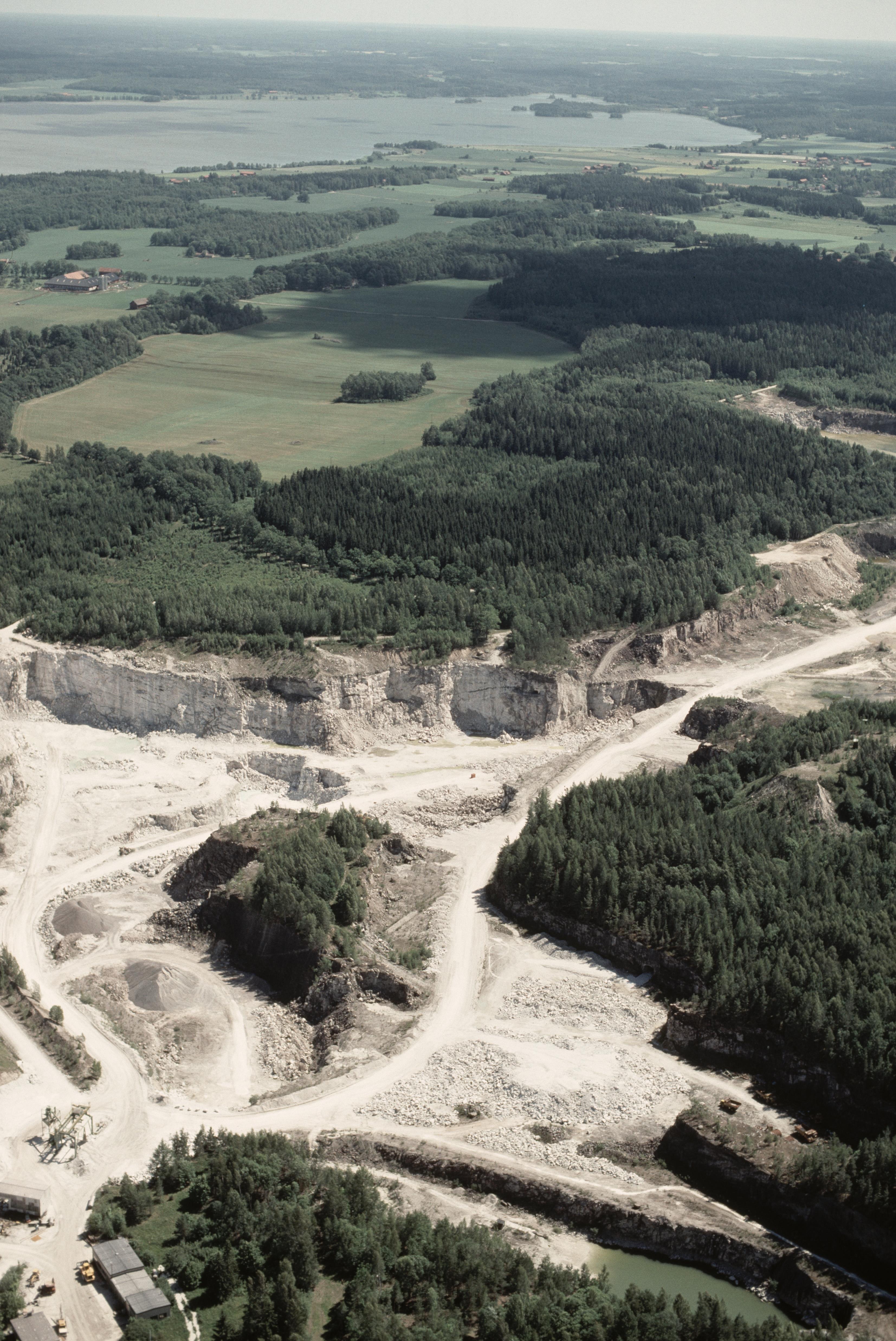 Beskrivning: Anmärkning (övrig): Riksintresse-nr/namn: D22 - Österåkerbygden. Socken: Österåker. Motivering: Särpräglat odlingslandskap vid sjön Öljaren med stora byar, gårdar och torp som speglar en varierad förindustriell tillverkning som komplement till jordbruket. (Fornlämningsmiljö, Bymiljö, Herrgårdsmiljö, Gruvmiljö, Stenbrott). - Uttryck för riksintresset: Lagaskiftat odlingslandskap med öppna diken, många långa stenmurar, ängs- och hagmarker och enhetlig 1800-talsbebyggelse. De ovanligt stora byarna Ättersta, Hulla och Säby samt sockencentrum i Österåkers kyrkby. Forsby herrgård med ekallé, f d mejeri och ångsåg. Lämningar efter brytning av järnmalm och kalk, kalkugnsrester. Gravfält från äldre och yngre järnålder. [Texten uppdaterat av Riksantikvarieämbetet våren 2013.] Beskrivning: Forsby kalkbrott vid nordvästra delen av sjön Öljaren. Här startar kalklinbanan mellan Forsby (i Österåkers socken) och Köping (i Köpings socken). I områdets södra del fornlämning / stentäkt RAÄnr Österåker 129. Bilden är tagen mot (väderstreck): SSO Fotosyfte: Flygbildsdokumentation