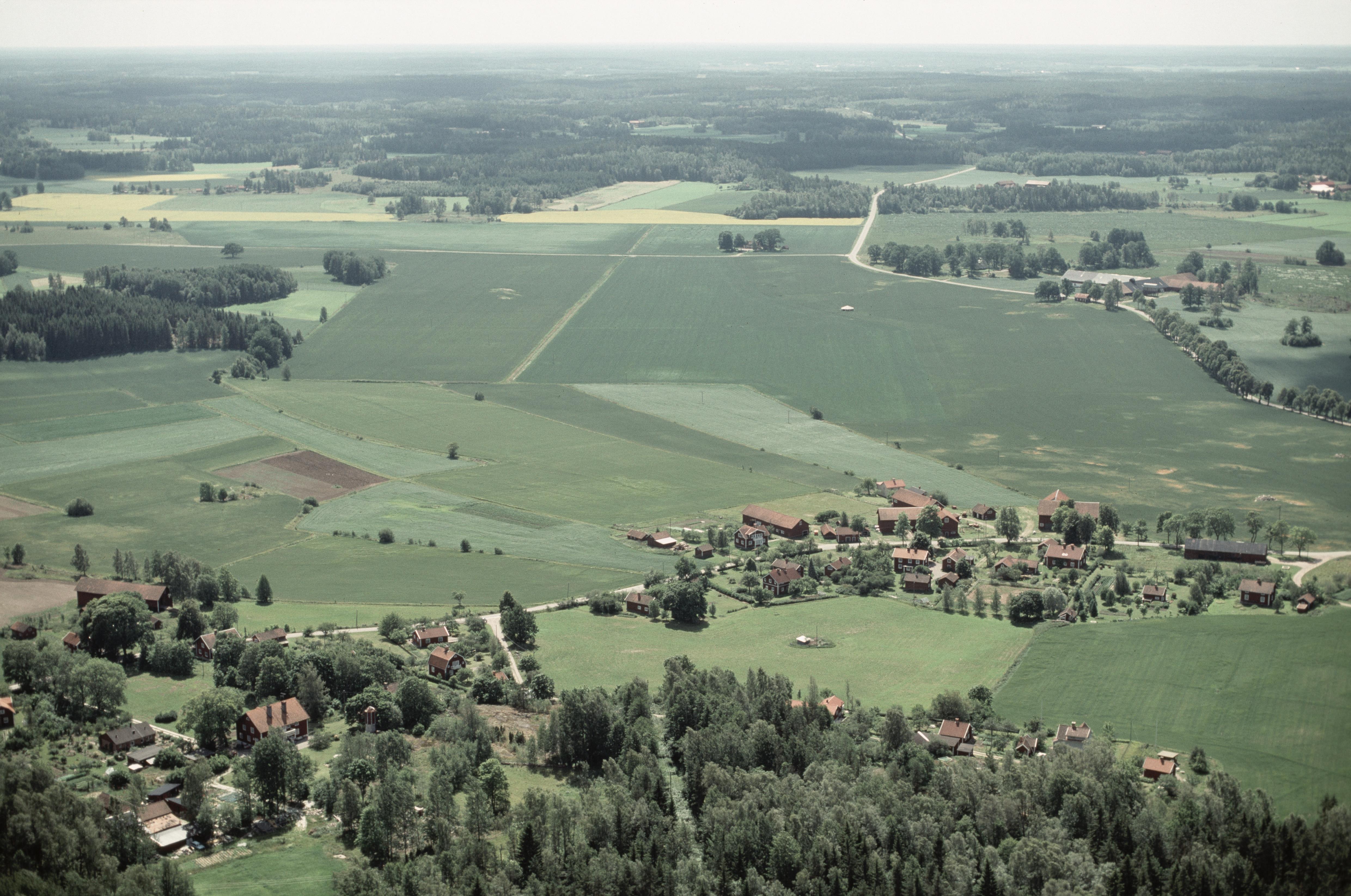 Beskrivning: Ättersta by. Vid bildens mitt gruvhål RAÄnr Österåker 87:1. Bilden är tagen mot (väderstreck): S