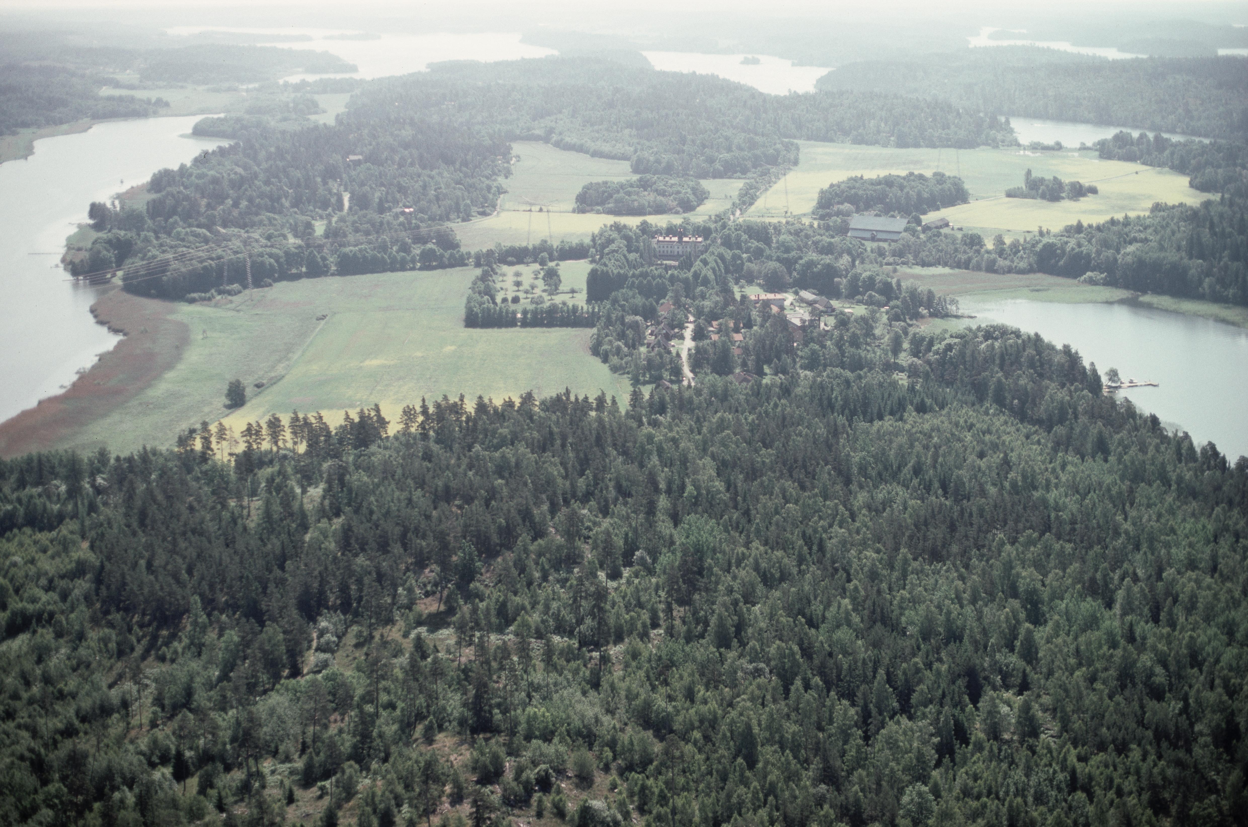 Beskrivning: Helgö mellan Bokholmssundet och Norrsundet i Mälaren. Vid bildens mitt Kaggeholms herrgård RAÄnr Ekerö 46:1. I bildens övre del Kyrkfjärden. Bilden är tagen mot (väderstreck): SO