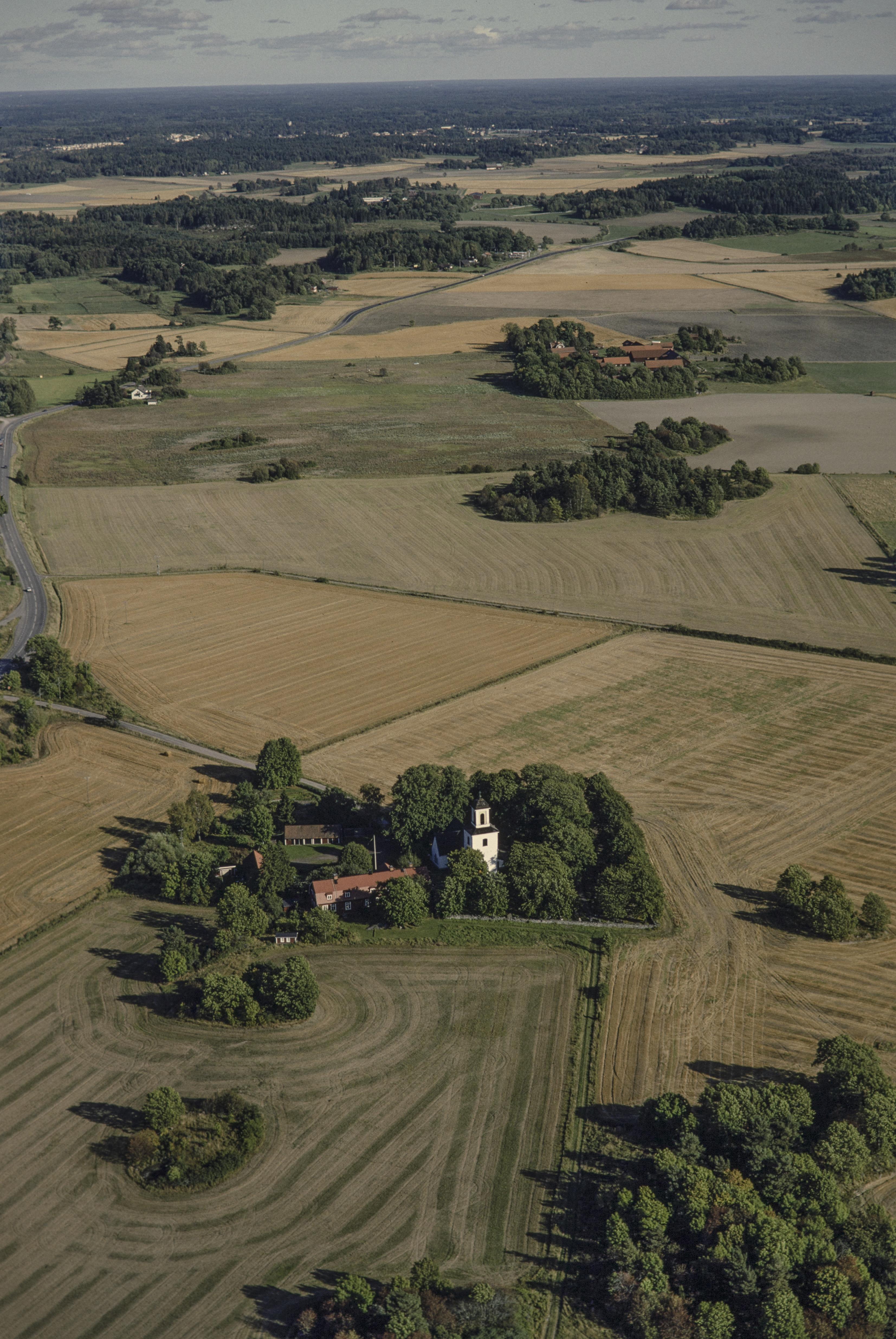 Beskrivning: Alsike kyrka under bildens mitt. Uppe till höger Tuna by. Bilden är tagen mot (väderstreck): Ö