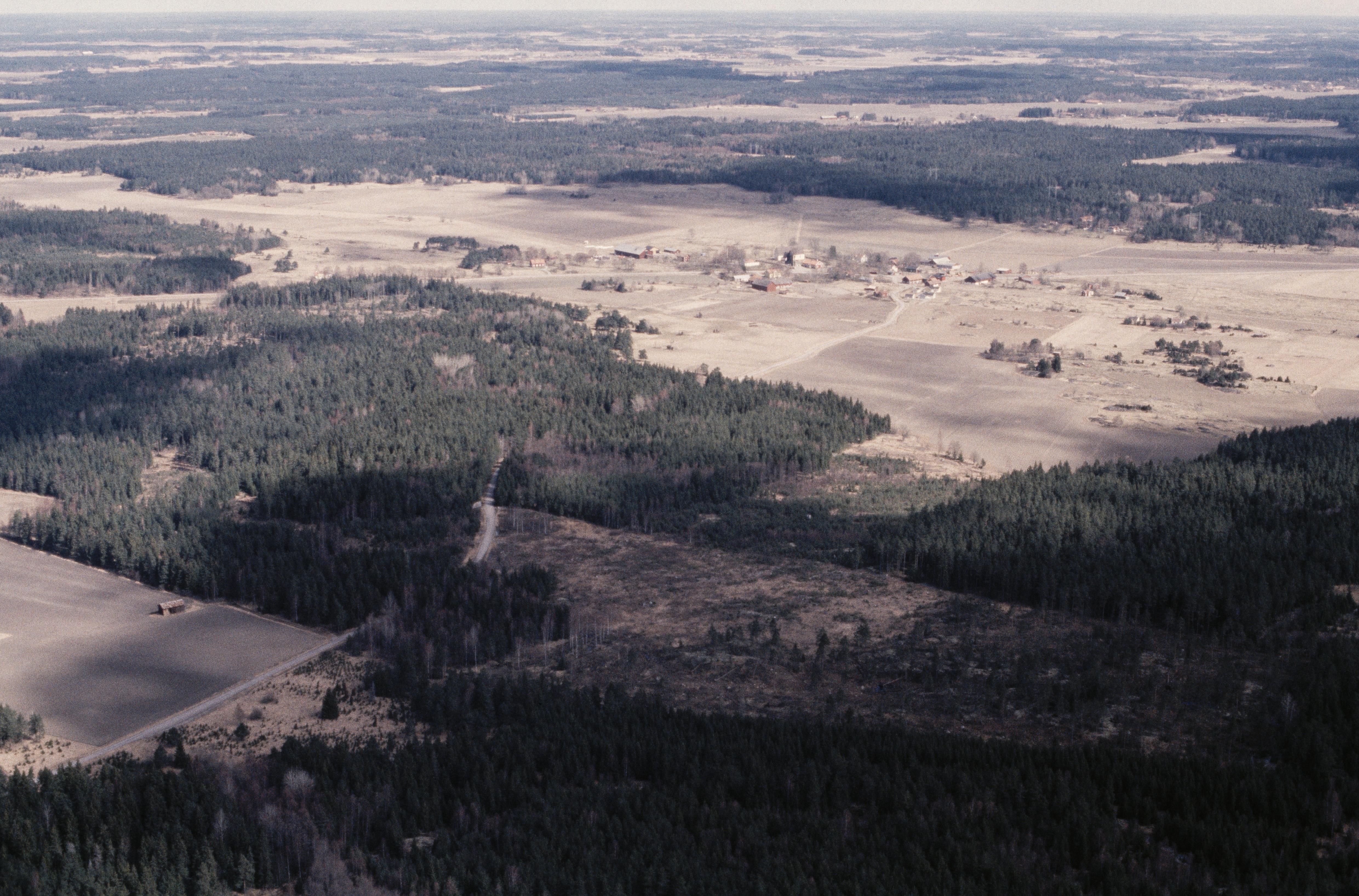 Beskrivning: I bildens nedre del gränsen mot socknet Vallby. Vid bildens mitt hällristning i boplats RAÄnr Boglösa 260:1 och 468:1. I bildens övre del Boglösa kyrka och kyrkby. Bilden är tagen mot (väderstreck): NO