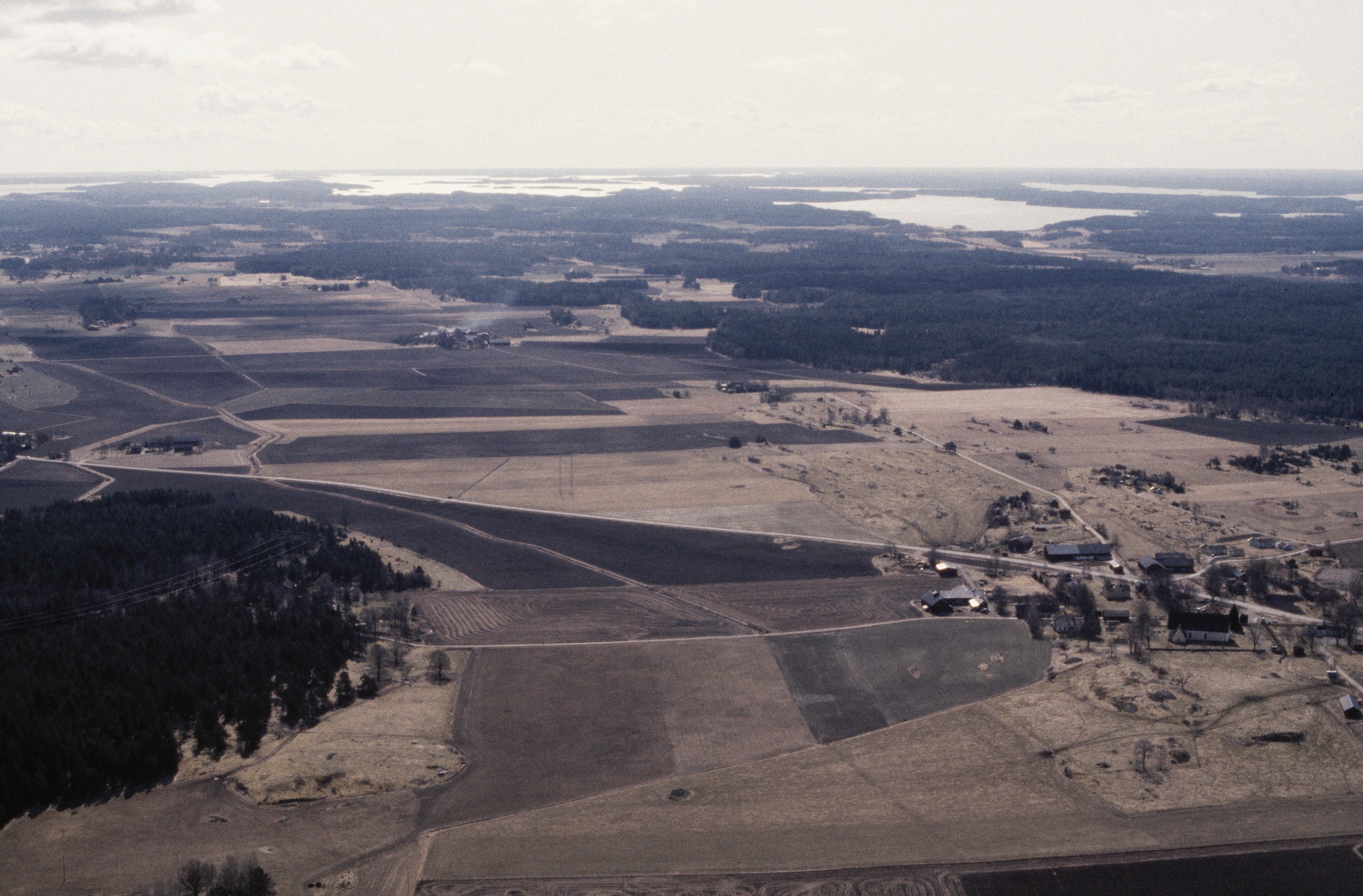 Beskrivning: I bildens nedre del område med hällristningar RAÄnr Boglösa 172:1-7. Till höger Boglösa kyrka och kyrkby. I bildens övre del socknen Lillkyrka, Vallby, Kungs-Husby m.fl. mot Stabyfjärden i Mälaren. Bilden är tagen mot (väderstreck): SO