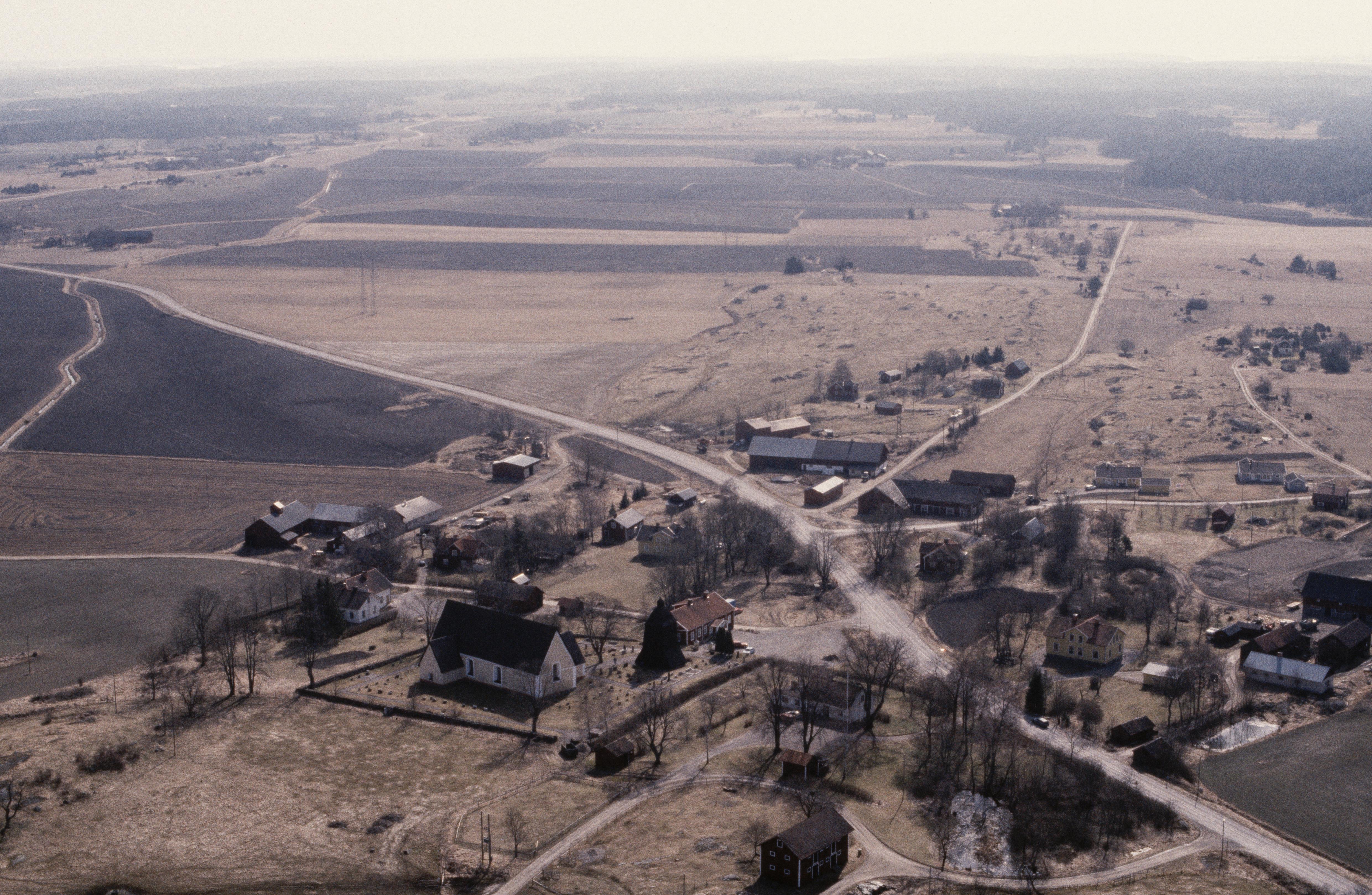 Beskrivning: Boglösa kyrka och kyrkby. Vid kyrkan boplats RAÄnr Boglösa 582:1. Bilden är tagen mot (väderstreck): SO