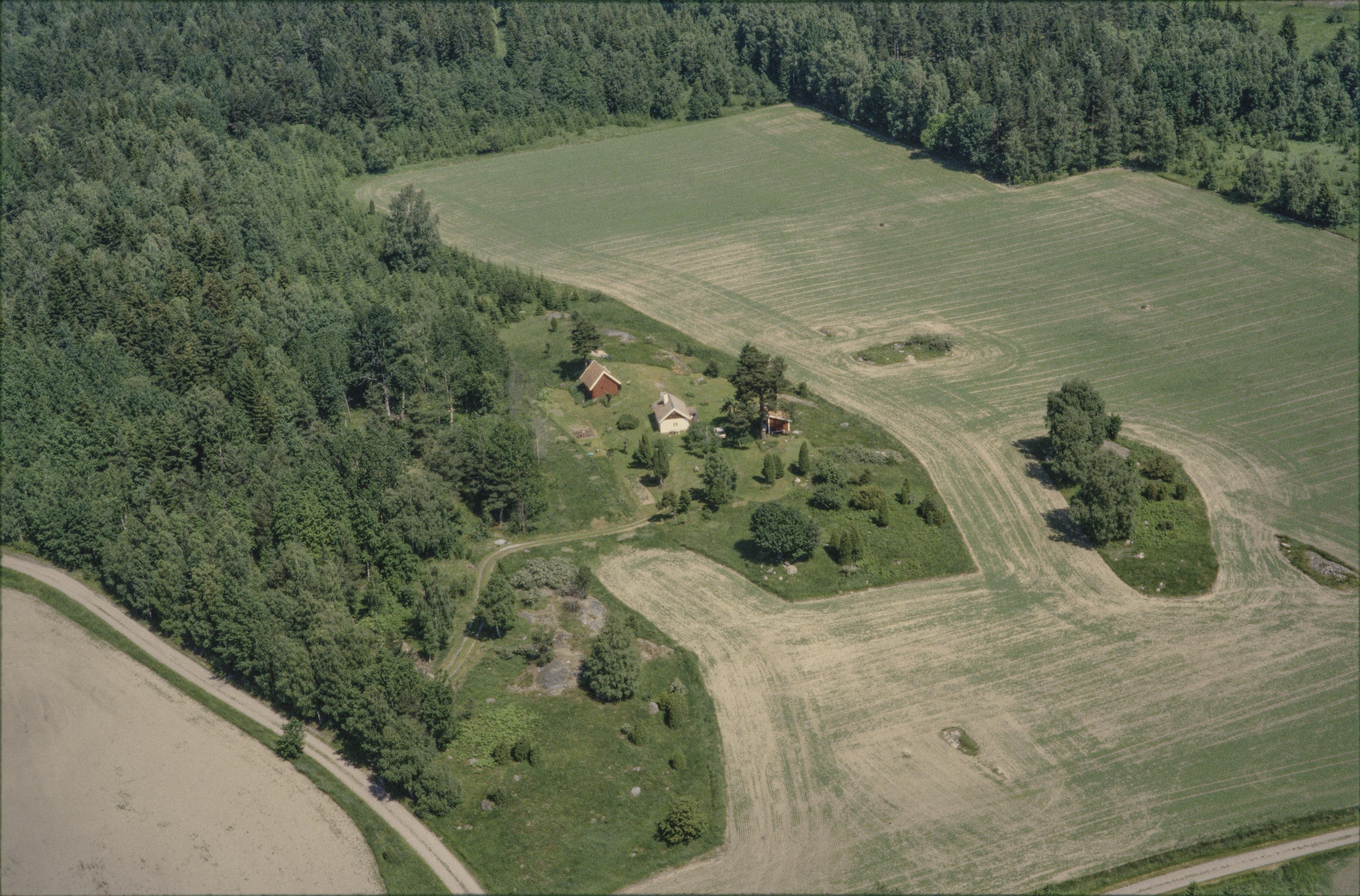 Beskrivning: Torpet Lugnet. I bildens nedre del fossil åker RAÄnr Bro 127:1. Bilden är tagen mot (väderstreck): N