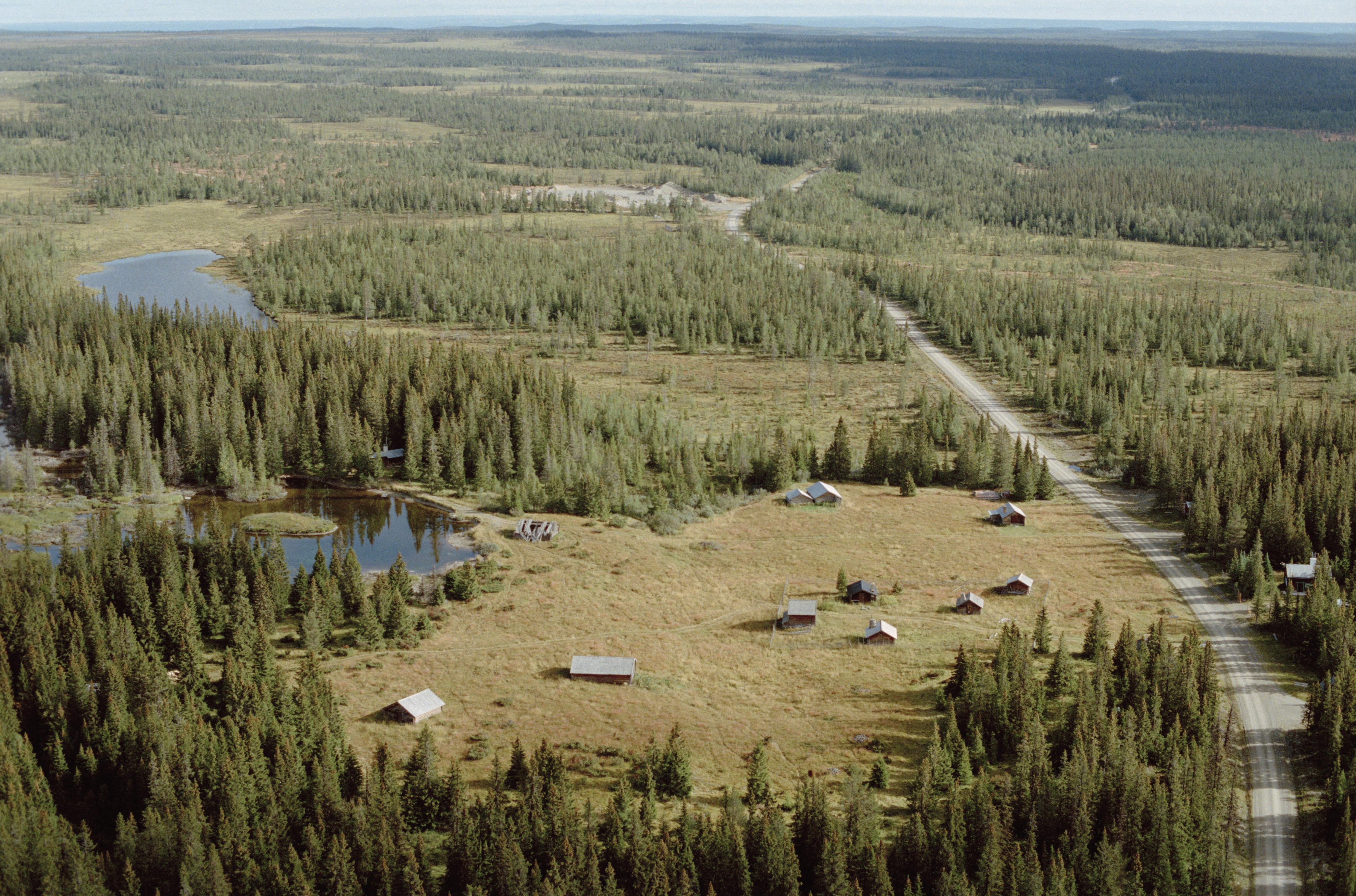 Beskrivning: Fittjebodarna i Ovikfjällens fäbodområde. Under bildens mitt fäbod RAÄnr Oviken 460. Till vänster över bildens mitt Fittjebodtjärnen och i bildens övre del fäbodområdet Gamla Fittjebodarna. Bilden är tagen mot (väderstreck): NO