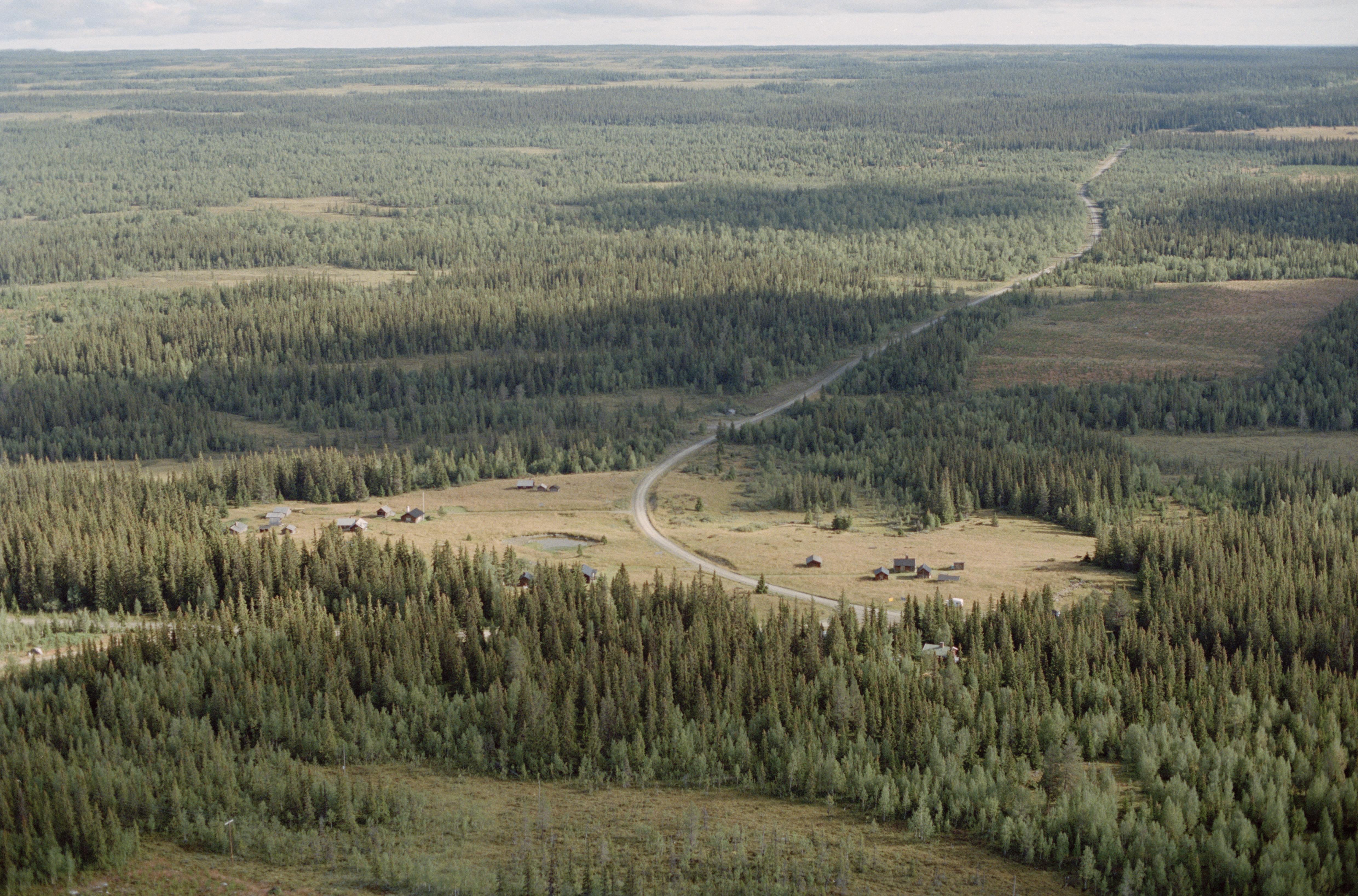 Beskrivning: Galåbodarna i Ovikfjällens fäbodområde, Fäbodområdet Svedjebodarna till höger över bildens mitt. Bilden är tagen mot (väderstreck): NNO