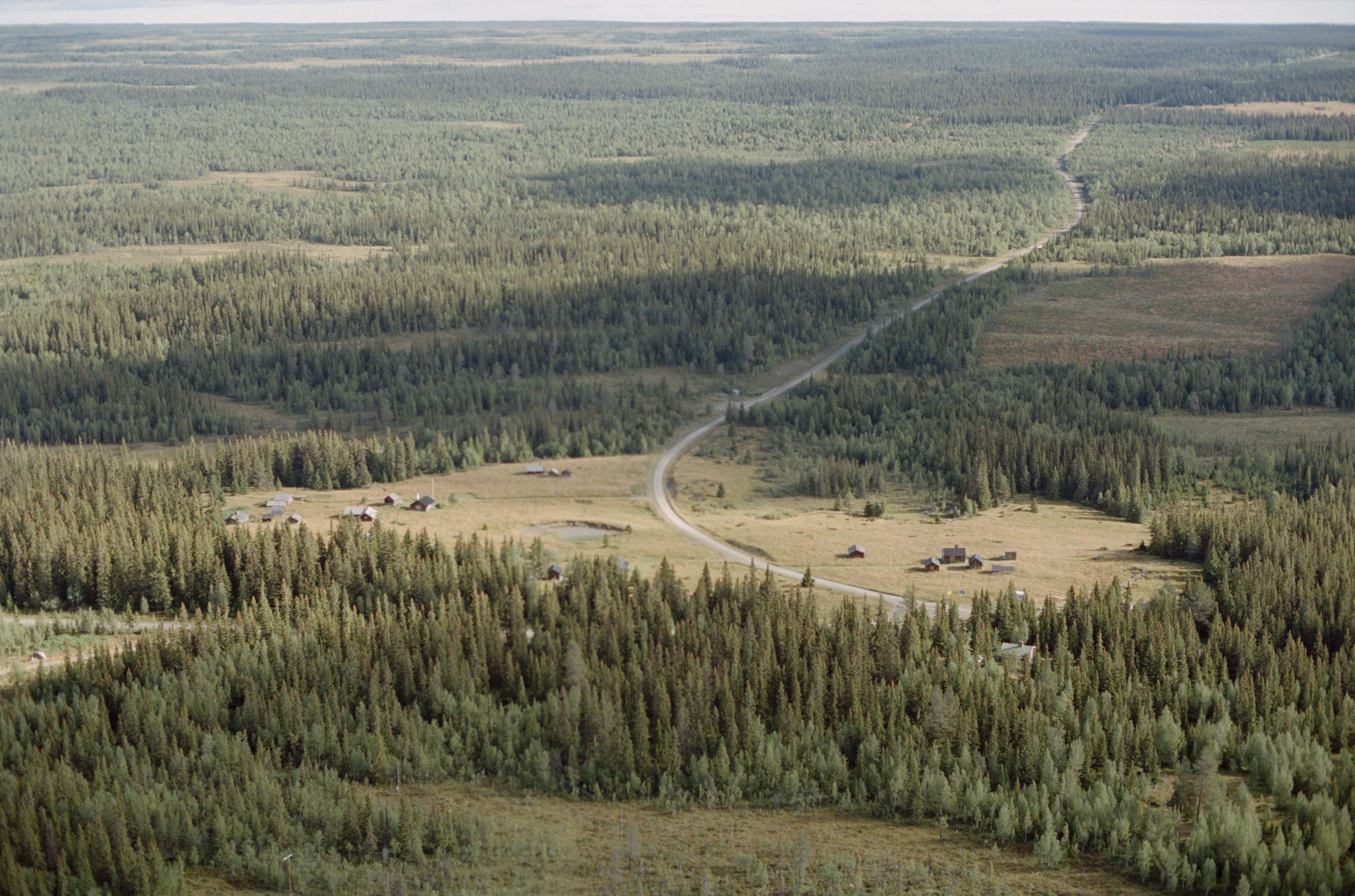 Beskrivning: Galåbodarna i Ovikfjällens fäbodområde, Fäbodområdet Svedjebodarna till höger över bildens mitt. Bilden är tagen mot (väderstreck): NNO