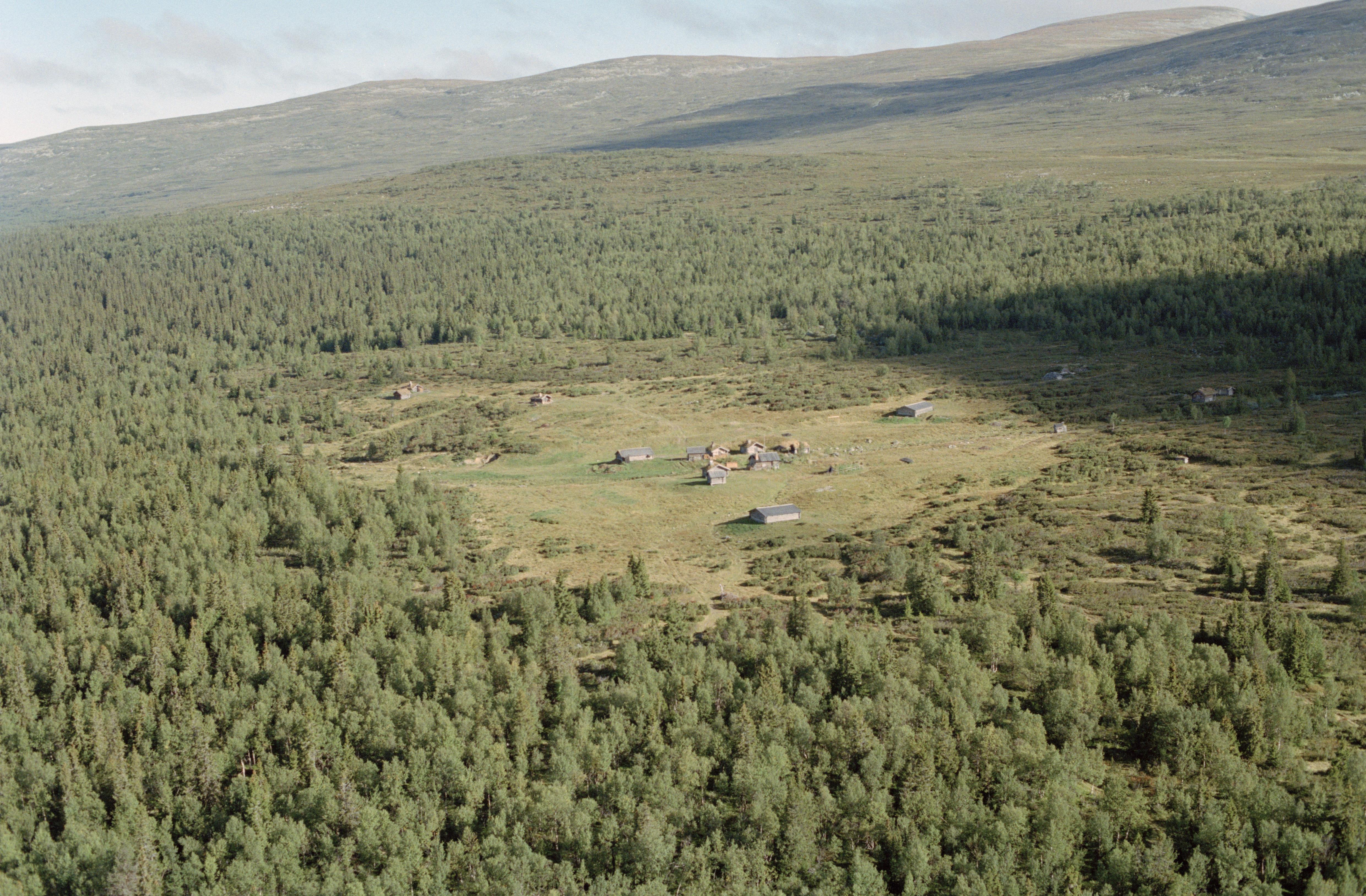 Beskrivning: Fäbodområdet Öster-Arådalen (skrivs även Östra Arådalen) i Ovikfjällens fäbodområde och Arådalens naturreservat. Bilden är tagen mot (väderstreck): NNO