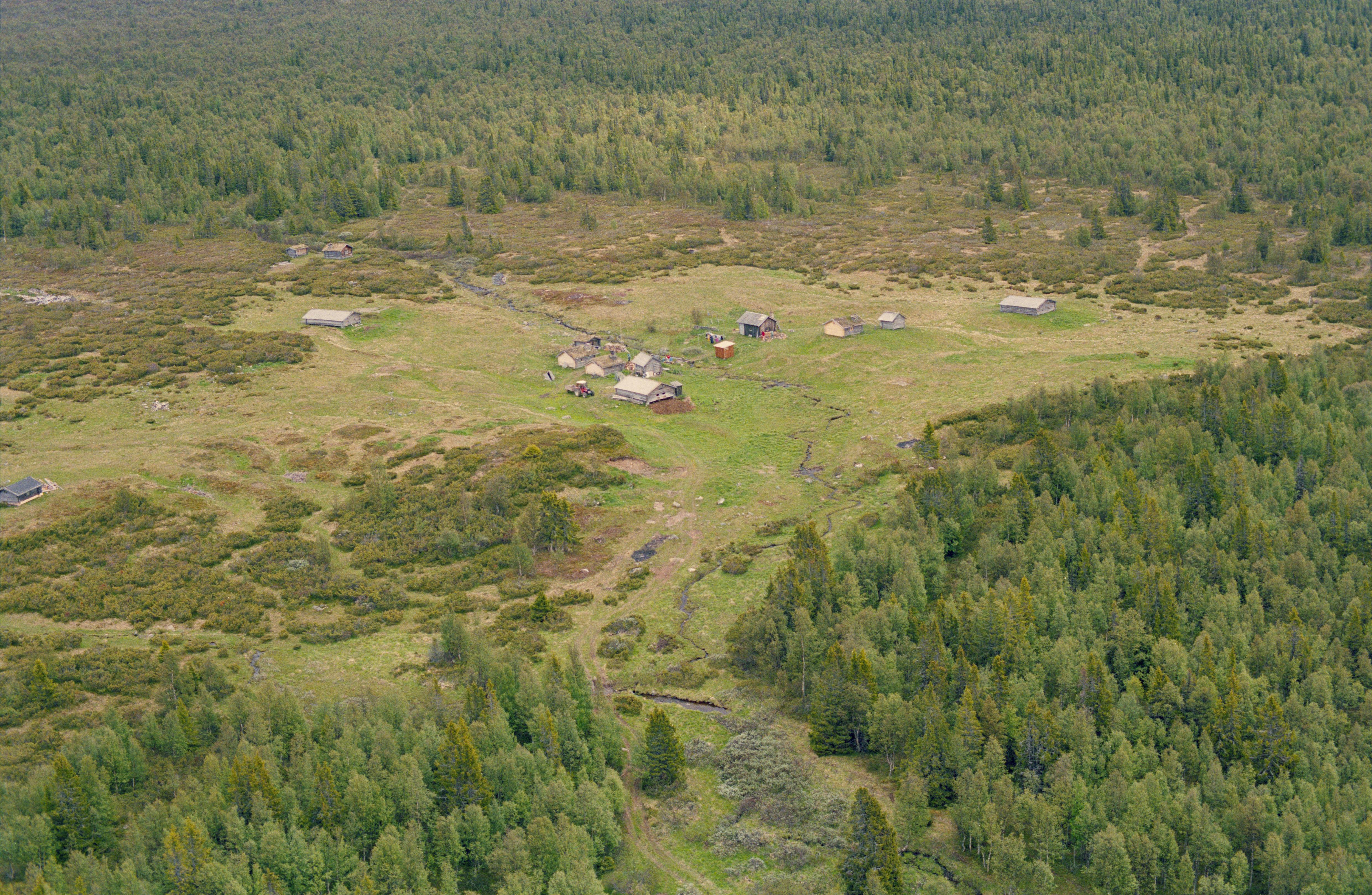 Beskrivning: Fäbodområdet Öster-Arådalen (skrivs även Östra Arådalen) i Ovikfjällens fäbodområde och Arådalens naturreservat. Bilden är tagen mot (väderstreck): SO