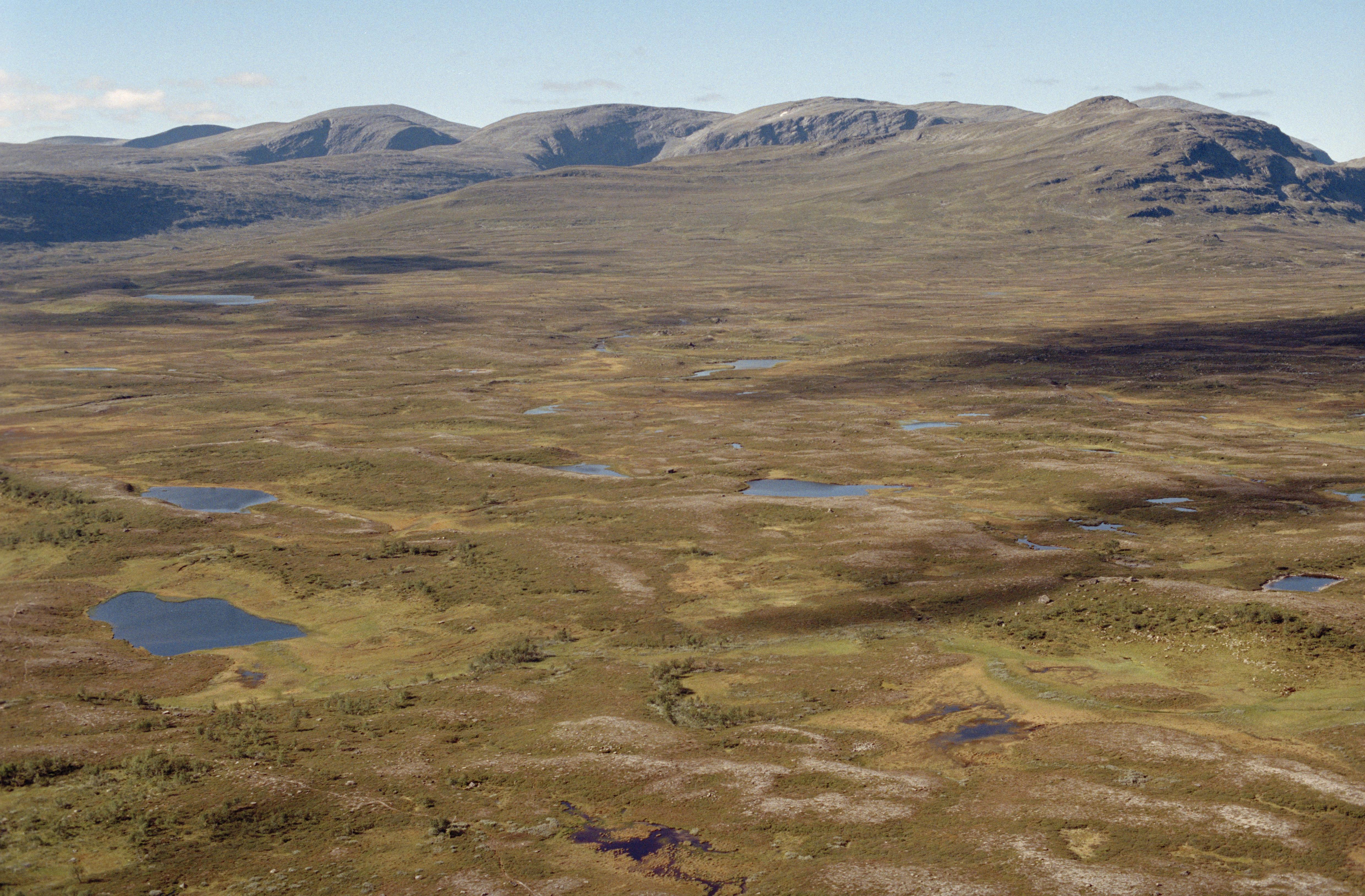 Beskrivning: Området Kroktjärnvallen / Bahrtja (Bartjan), ett samisk kulturmiljö. I bildens nedre del Kamptjärnarna på nordsidan av sjön Kroktjärnen, i västra delen av sameviste RAÄnr Oviken 265:1. Fjällområdet Lunndörrstjänarna i bildens övre del. Bilden är tagen mot (väderstreck): VNV