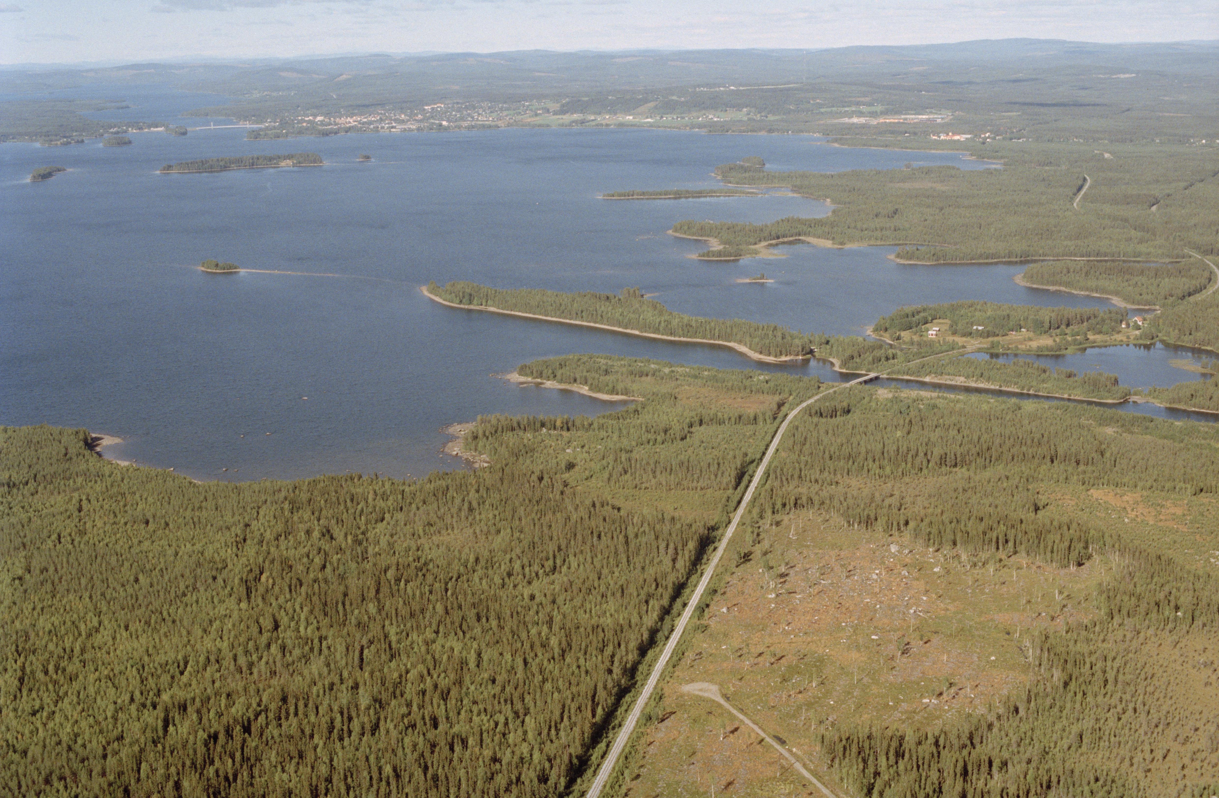 Beskrivning: Södra delen av sjön Ströms Vattudal vid östra delen av Russfjärden. Faxälven till höger om bildens mitt. Vid bildens mitt långa udden Tännremmen och boplats Hammerdal 319:1, 325:1 m.fl. Längs udden går gränsen mot socknet Ström. Bilden är tagen mot (väderstreck): N