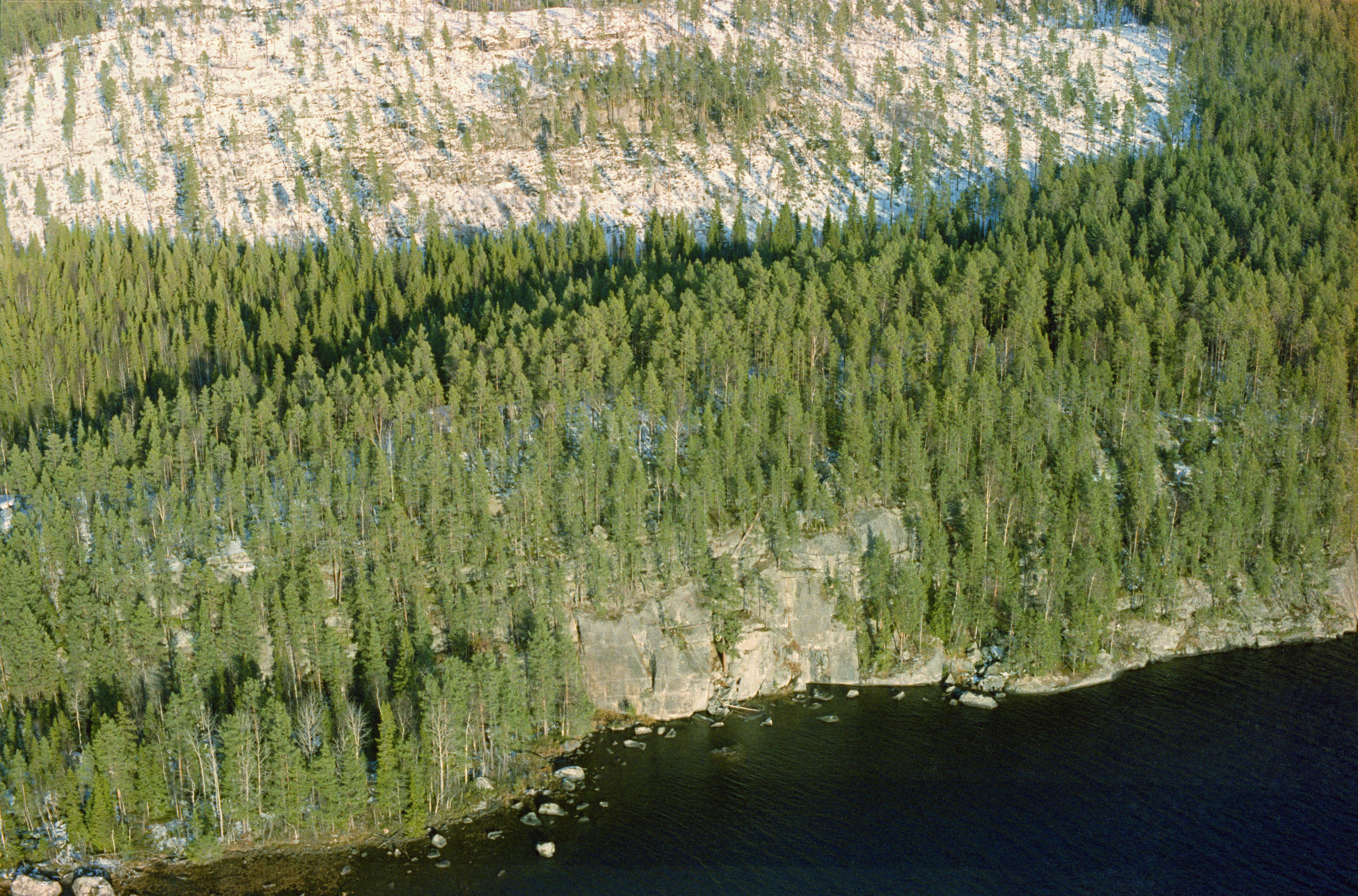 Beskrivning: Fångsjön, nordöstra området. Under bildens mitt Fångsjöberget med hällmålningar RAÄnr Ström 332:1-3. Åsberget i bildens övre del. Bilden är tagen mot (väderstreck): NO