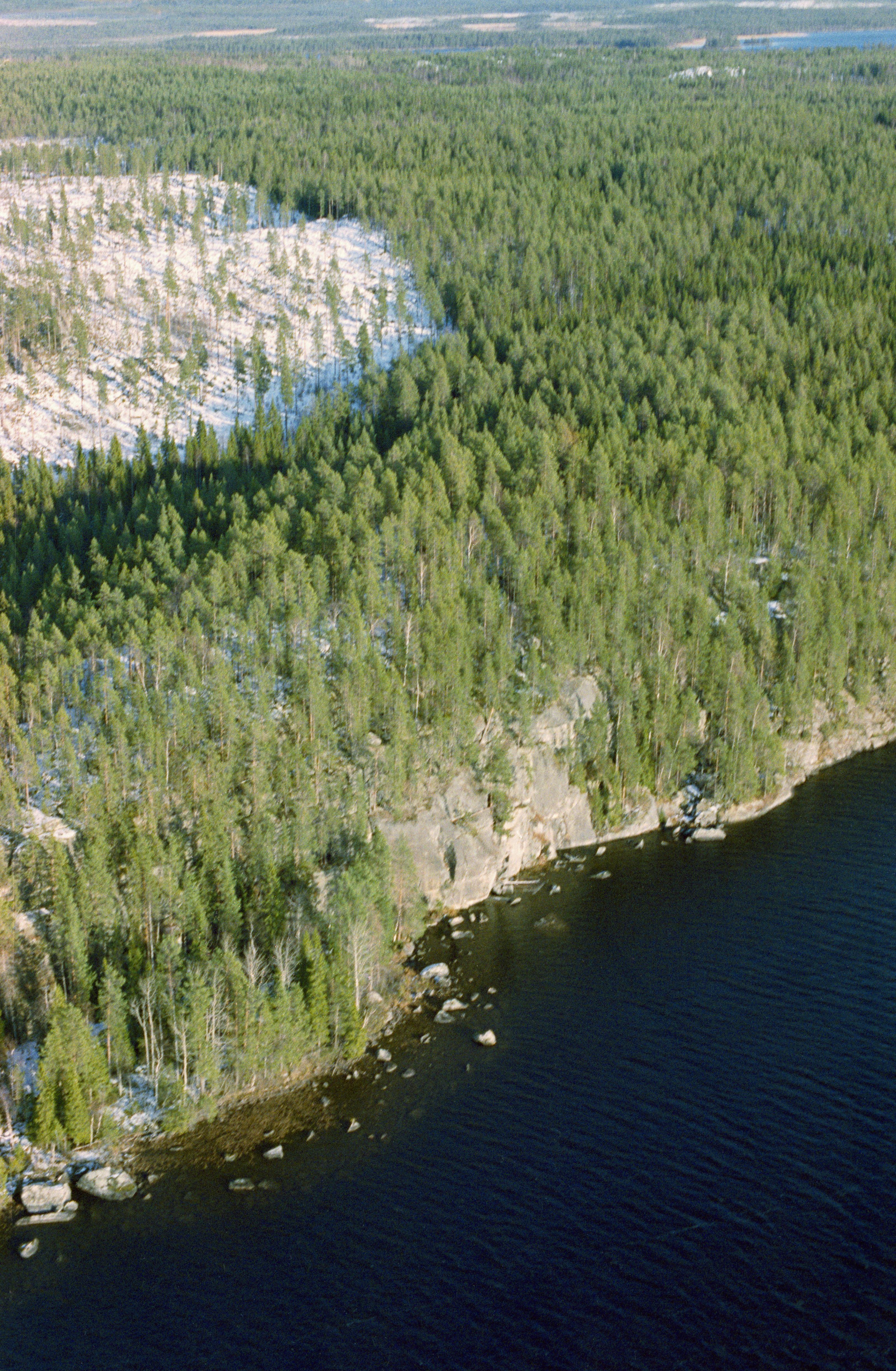 Beskrivning: Fångsjön, nordöstra området. Under bildens mitt Fångsjöberget med hällmålningar RAÄnr Ström 332:1-3. Åsberget vid bildens mitt. Malmsjön i bildens övre kant. Bilden är tagen mot (väderstreck): ONO