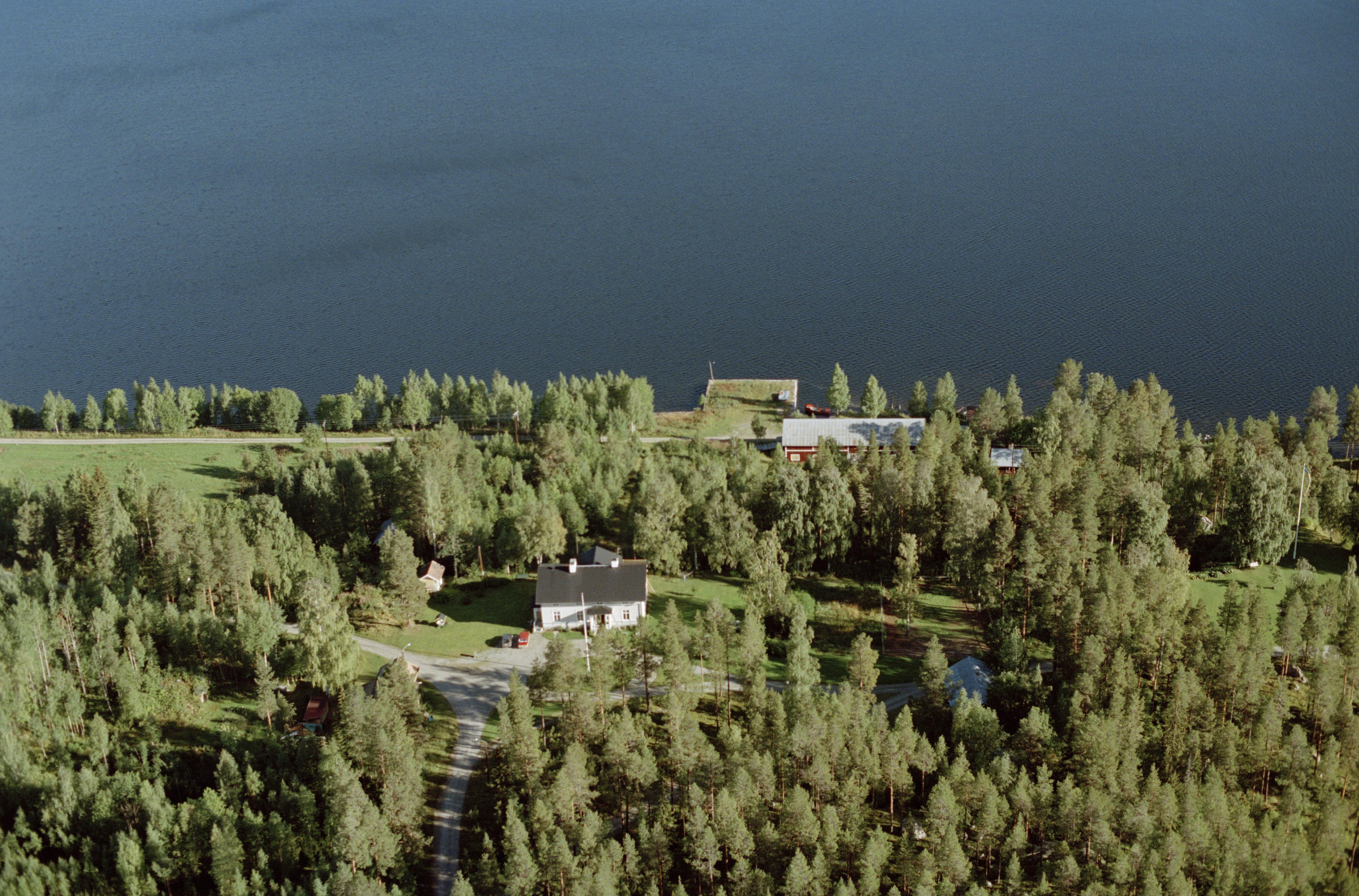 Beskrivning: Bomsunds by och hamn vid Indalälven väster om sjön Gesunden. Skogsbruksmiljö vid Indalsälven med boställe för flottningschefen. Bilden är tagen mot (väderstreck): N