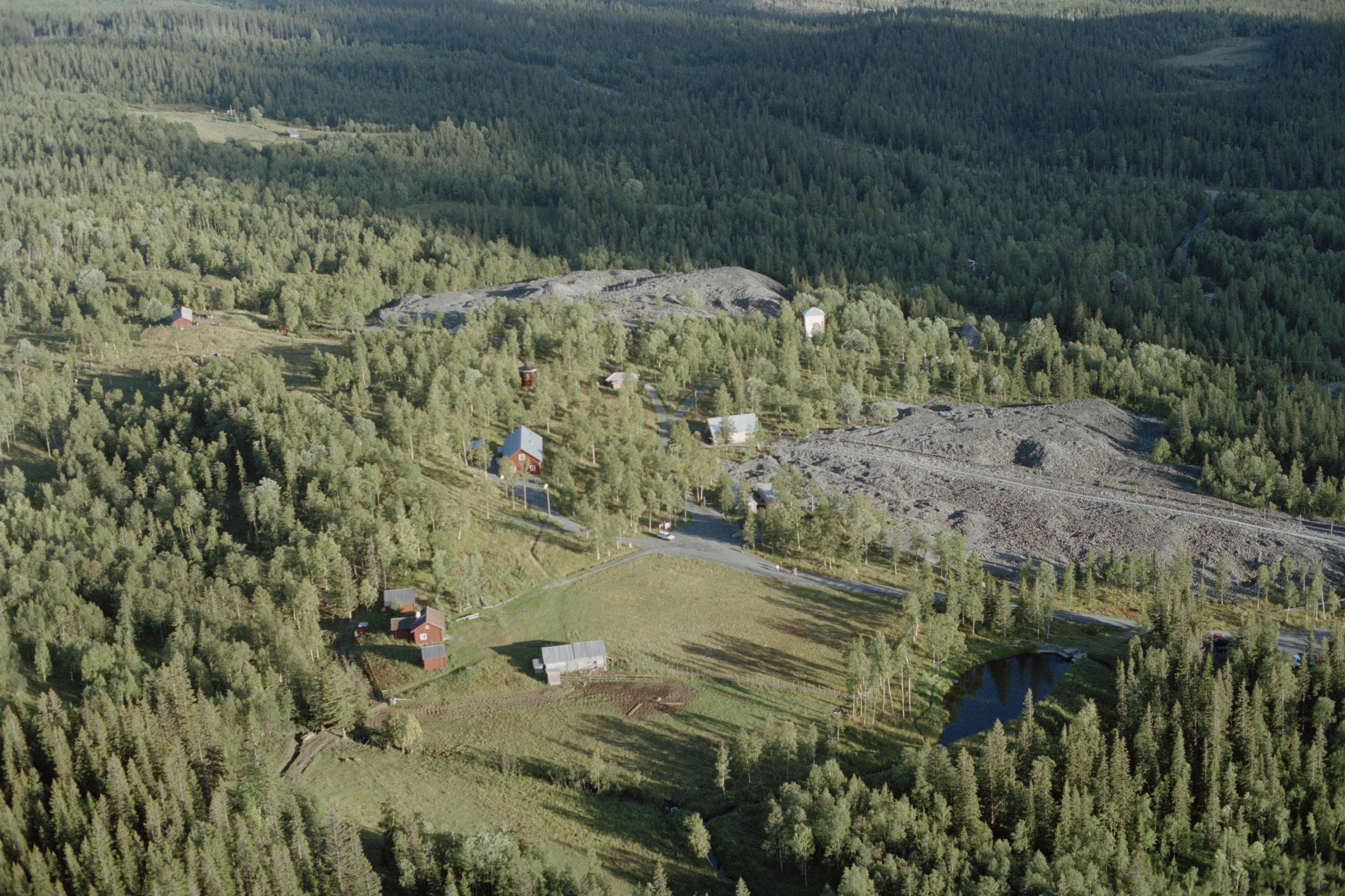 Beskrivning: Fröåns gruvor. Vid bildens mitt Drottninggruvan RAÄnr Åre 40:1 och uppe till höger Gustavsgruvan RAÄnr Åre 41:1. Bilden är tagen mot (väderstreck): NO