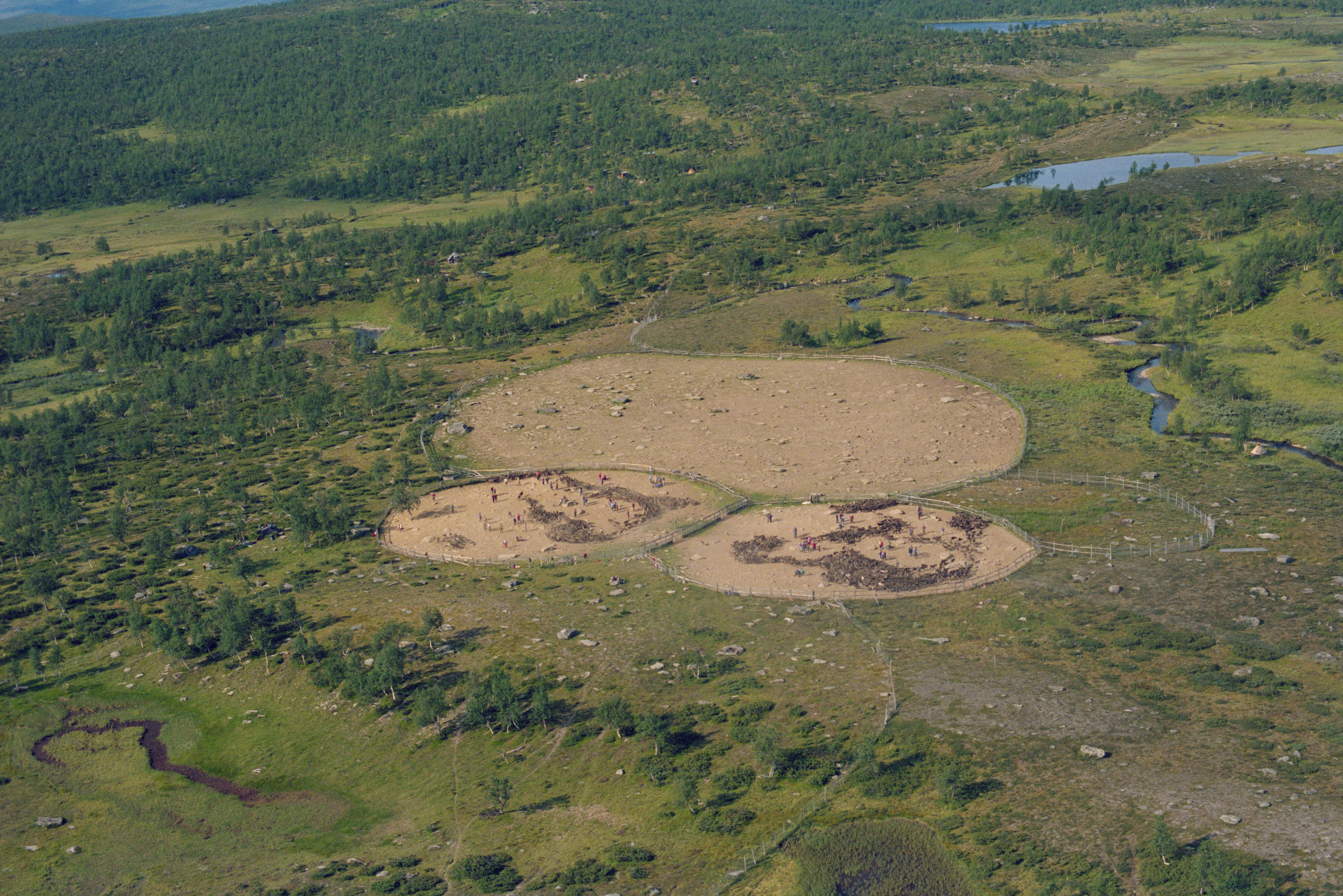 Beskrivning: Rengärden med renskiljning (rarkning) i samevistet Parka (Bárkka). På sydsidan av rengärden ett fångstgropssystem RAÄnr Arjeplog 327:1. Bilden är tagen mot (väderstreck): VSV