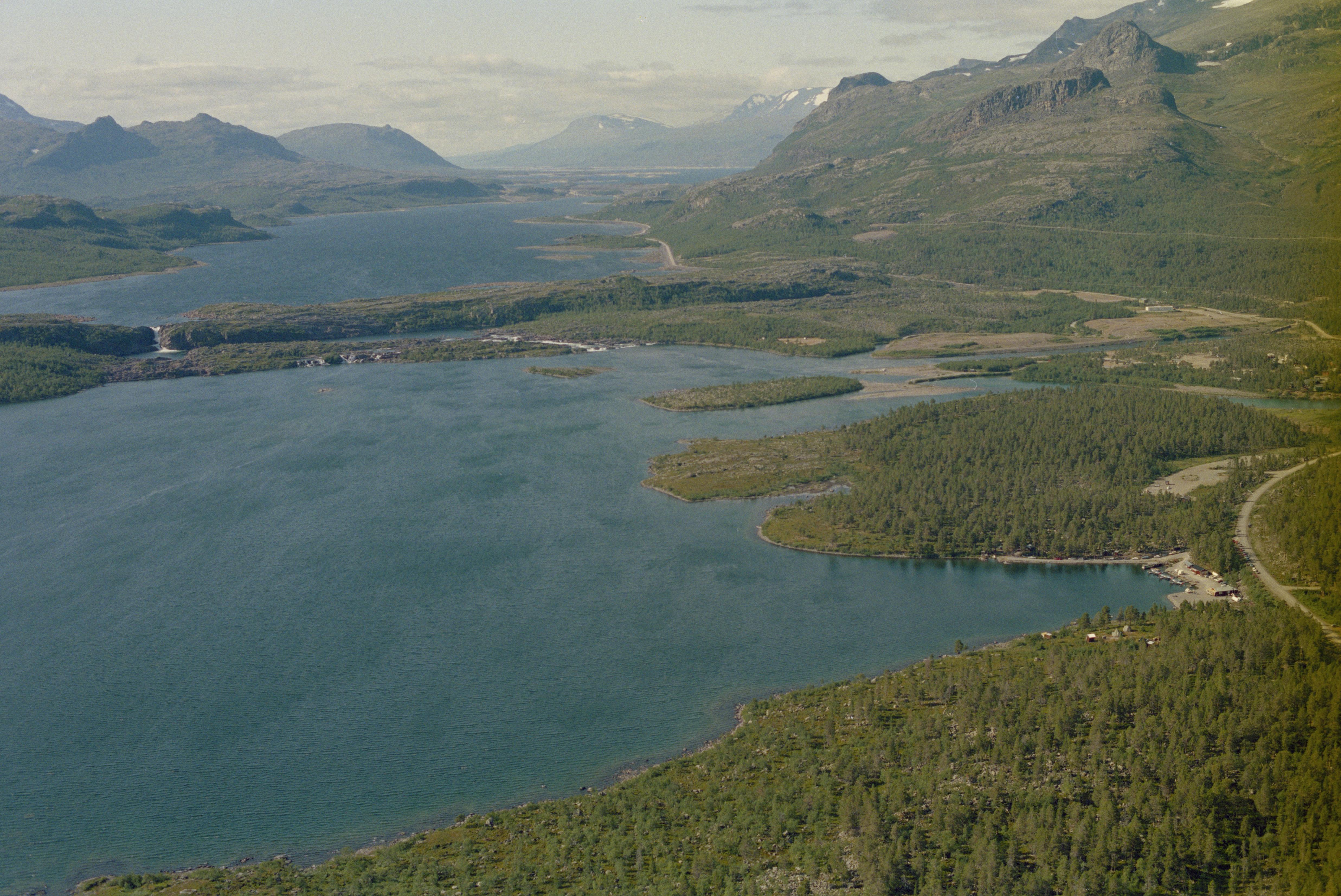 Beskrivning: Vietas kraftverk vid vattenfallet Stora Sjöfallet (Stuor Muorkke) i Stora Luleälven (Stuor Julevädno). Älven markerar gränsen mellan socknen Gällivare och Jokkmokk (i bildens vänstra kant). Vid kraftverket boplats RAÄnr Gällivare 115:1, viste Gällivare 120:1, m.fl. Området ingår i Stora Sjöfallets nationalpark (Stuor Muorkke) och världsarvet Laponia. Bilden är tagen mot (väderstreck): NV