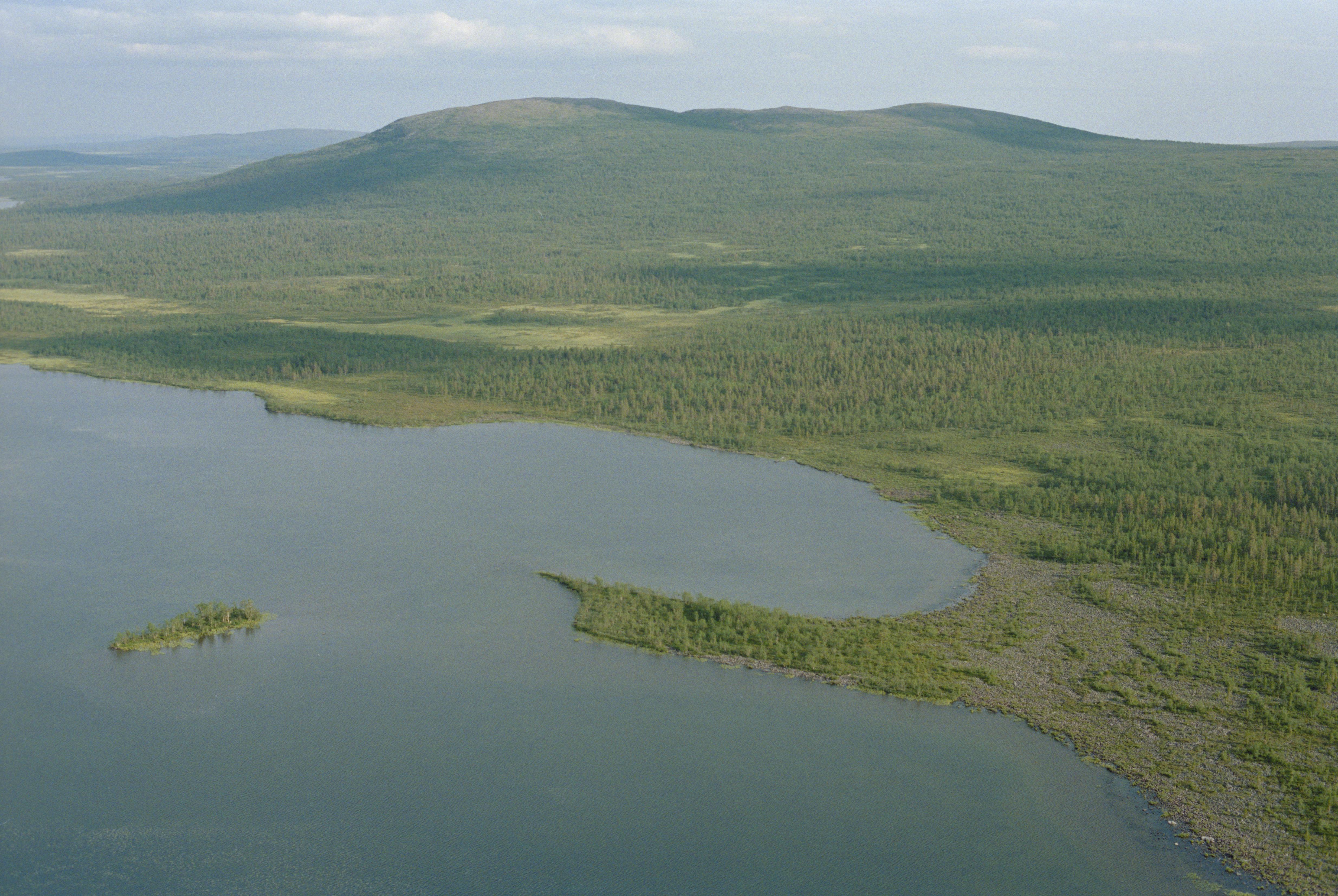 Beskrivning: Två samiska offerplatser i området Haltiosaari i Saivorova by vid sjön Isosaivo. På udden till höger under bildens mitt offerplats RAÄnr Gällivare 73:1 och på holmen (till vänster om udden) offerplats Gällivare 97:1. Bilden är tagen mot (väderstreck): SO