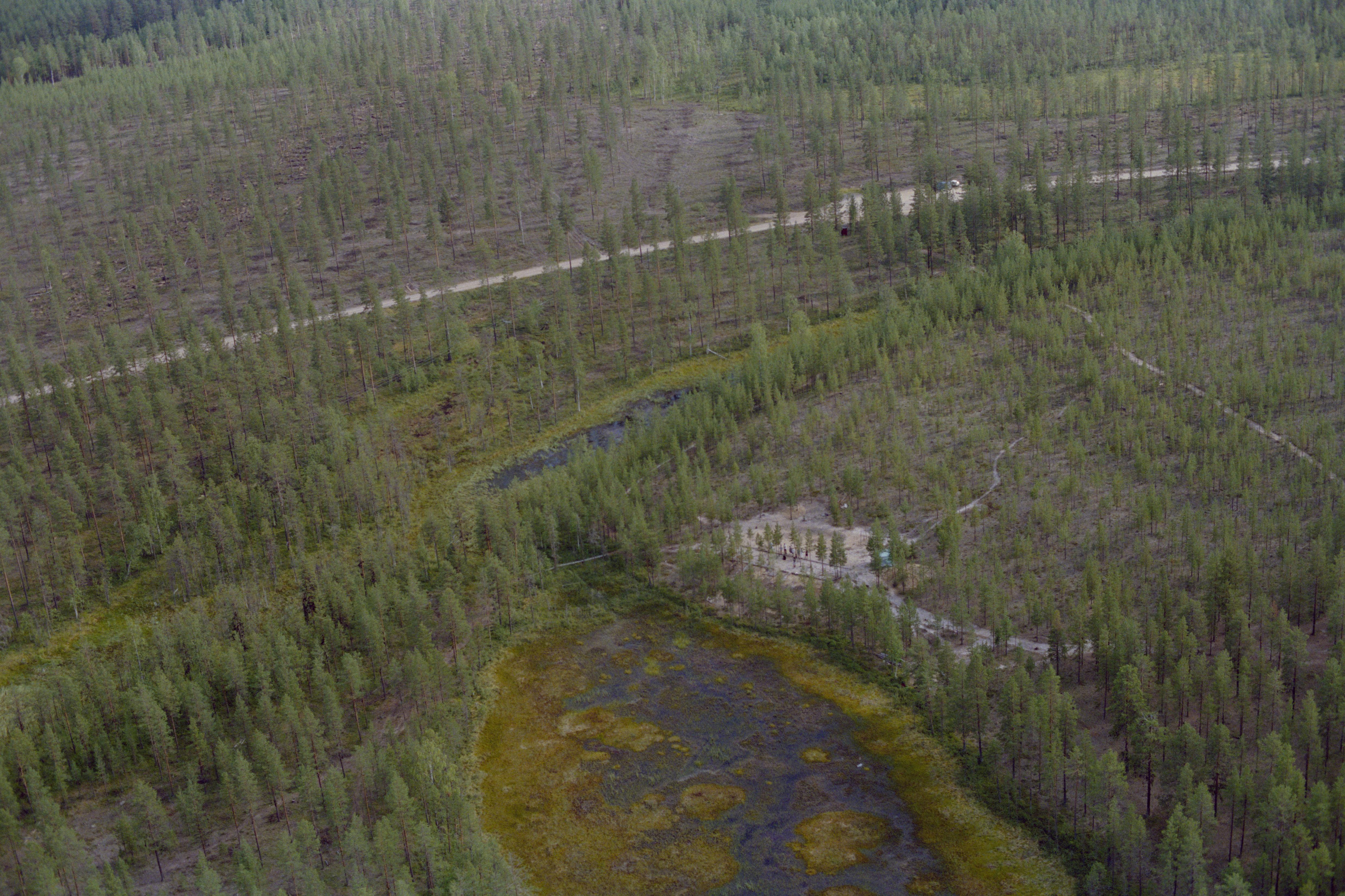Beskrivning: Besöksgrupp vid Vuollerimboplatsen, en stenåldersboplats med hyddbotnar och fångstgrop RAÄnr Jokkmokk 1292:1-2 norr om tätorten Vuollerim (Vuolleriebme). Vid boplatsen härd RAÄnr Jokkmokk 4935 och 4936. Bilden är tagen mot (väderstreck): SO