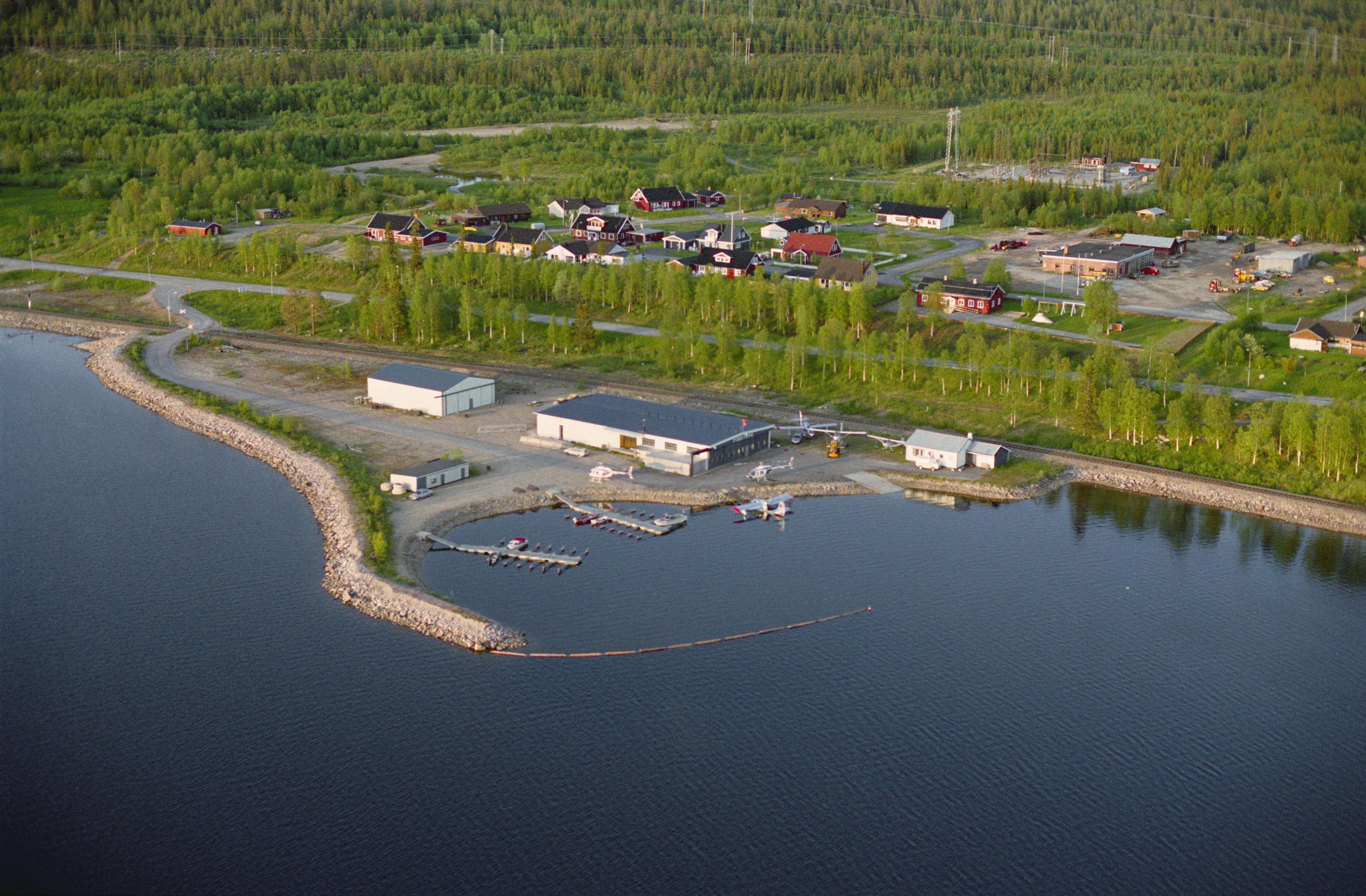 Beskrivning: Porjus (Bårjås) tätort och kraftverkssamhälle vid sjön Stora Lulevatten (Stuor Julevu) och Stora Luleälven (Stuor Julevädno). Porjus flyghamn i bildens mitt. Över bildens mitt rengärde RAÄnr Jokkmokk 1745:1. Bilden är tagen mot (väderstreck): ONO