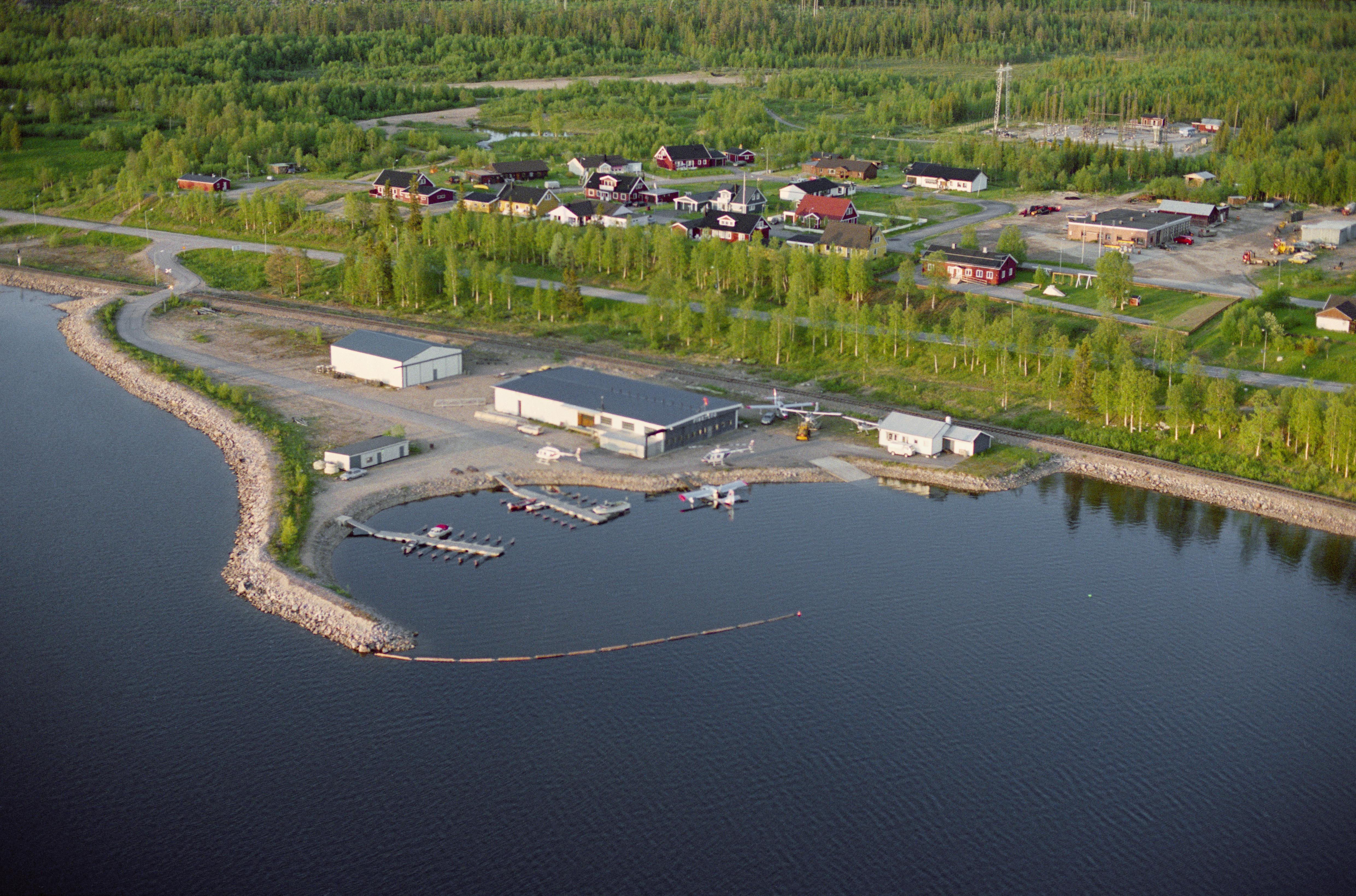 Beskrivning: Porjus (Bårjås) tätort och kraftverkssamhälle vid sjön Stora Lulevatten (Stuor Julevu) och Stora Luleälven (Stuor Julevädno). Porjus flyghamn i bildens mitt. Över bildens mitt rengärde RAÄnr Jokkmokk 1745:1. Bilden är tagen mot (väderstreck): ONO