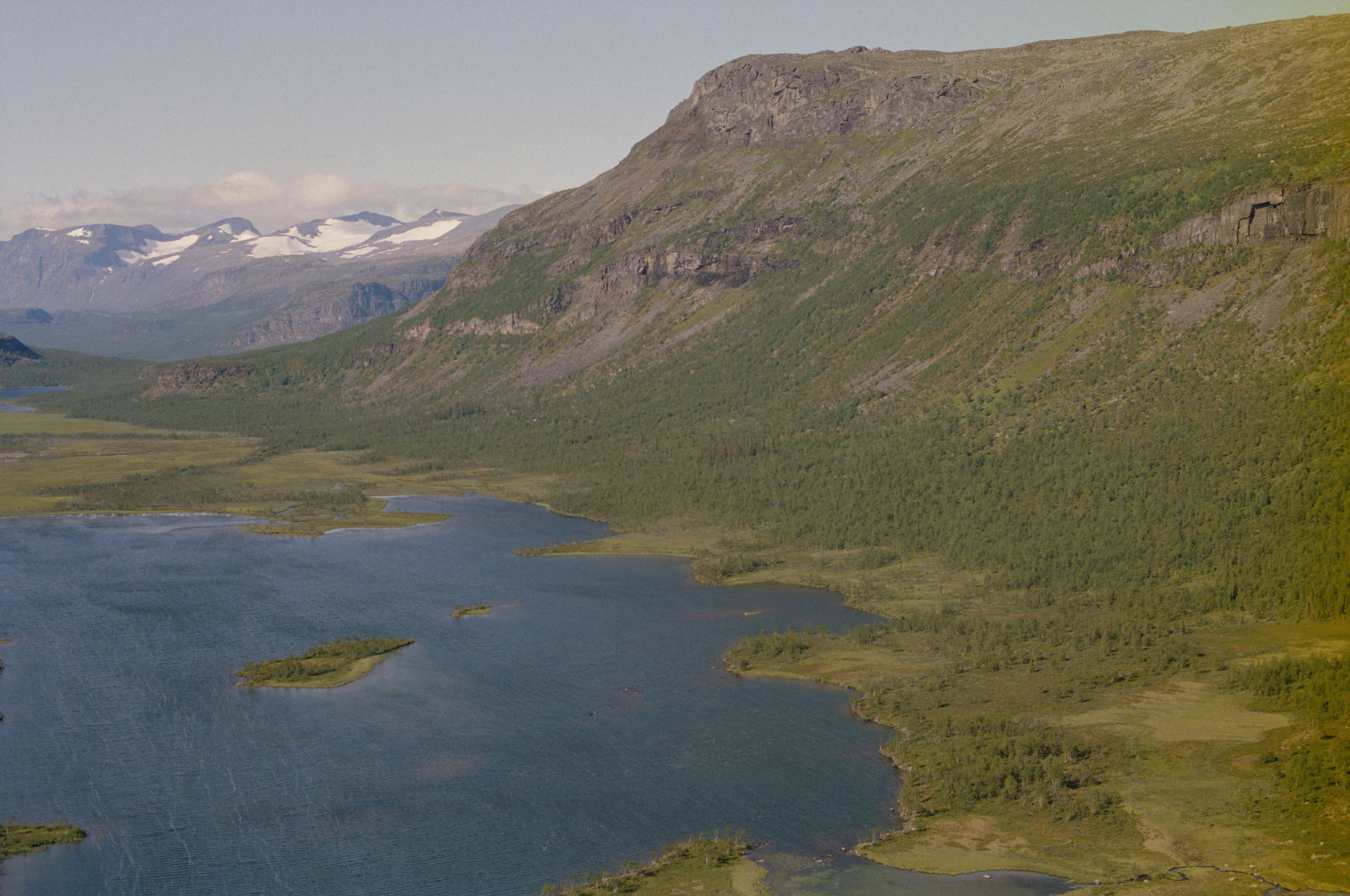 Beskrivning: Fjällområdet Tjakkeli (Tjahkelij) vid sjön Lulep Suobbatjaure (Lulep Suobbatjávrre). På udden vid bildens mitt offerplats RAÄnr Jokkmokk 5:1. I fjällsidan till höger offerplats RAÄnr Jokkmokk 1199:1 och 1200:1. Bilden är tagen mot (väderstreck): NV