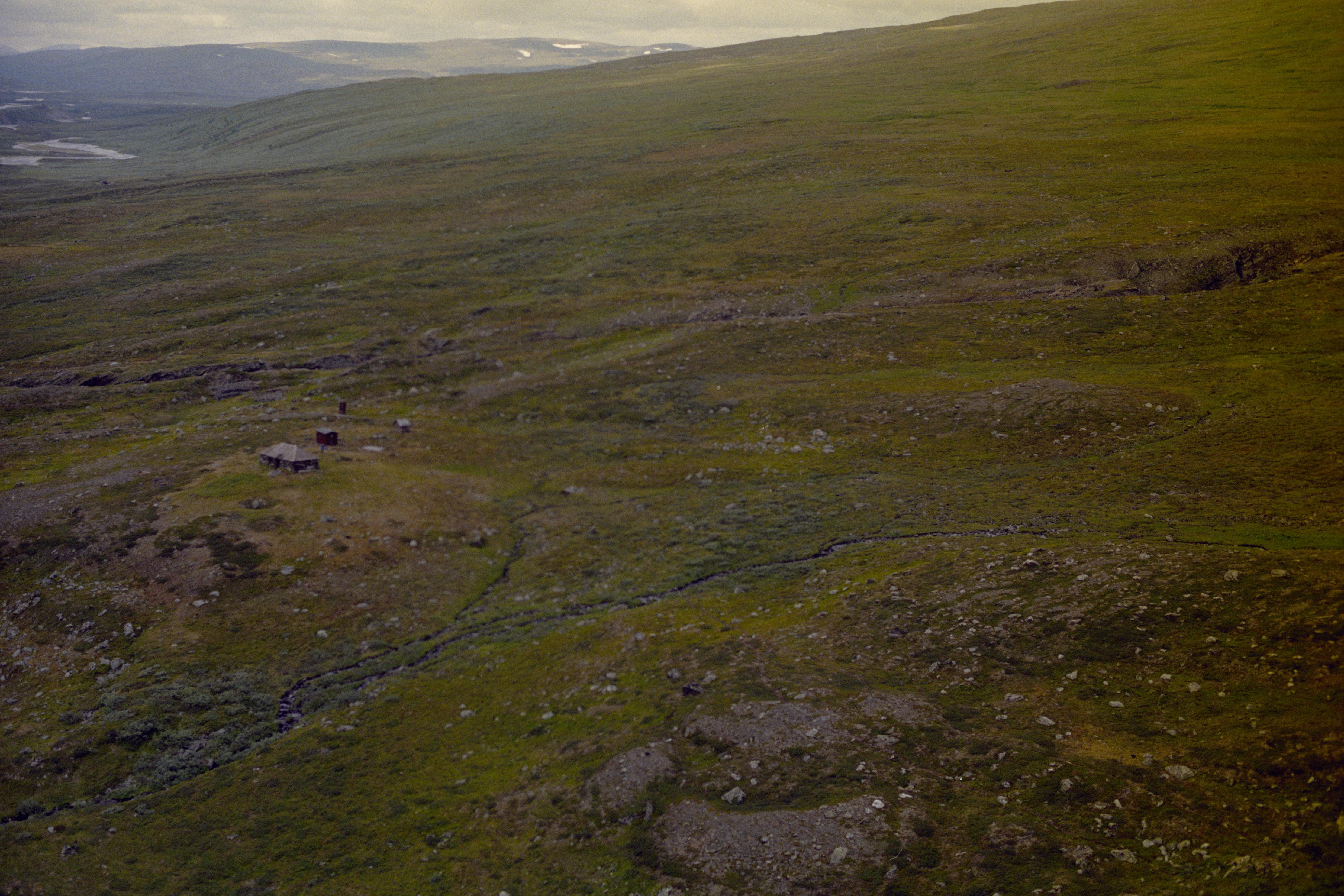 Beskrivning: Fjällområdet och gruvområdet Alkavare (Álggavárre). Alkavare kapell till vänster om bildens mitt. Vid kapellet gruvområde RAÄnr Jokkmokk 1296:1. Området ingår i Sareks nationalpark och världsarvet Laponia. Bilden är tagen mot (väderstreck): NV