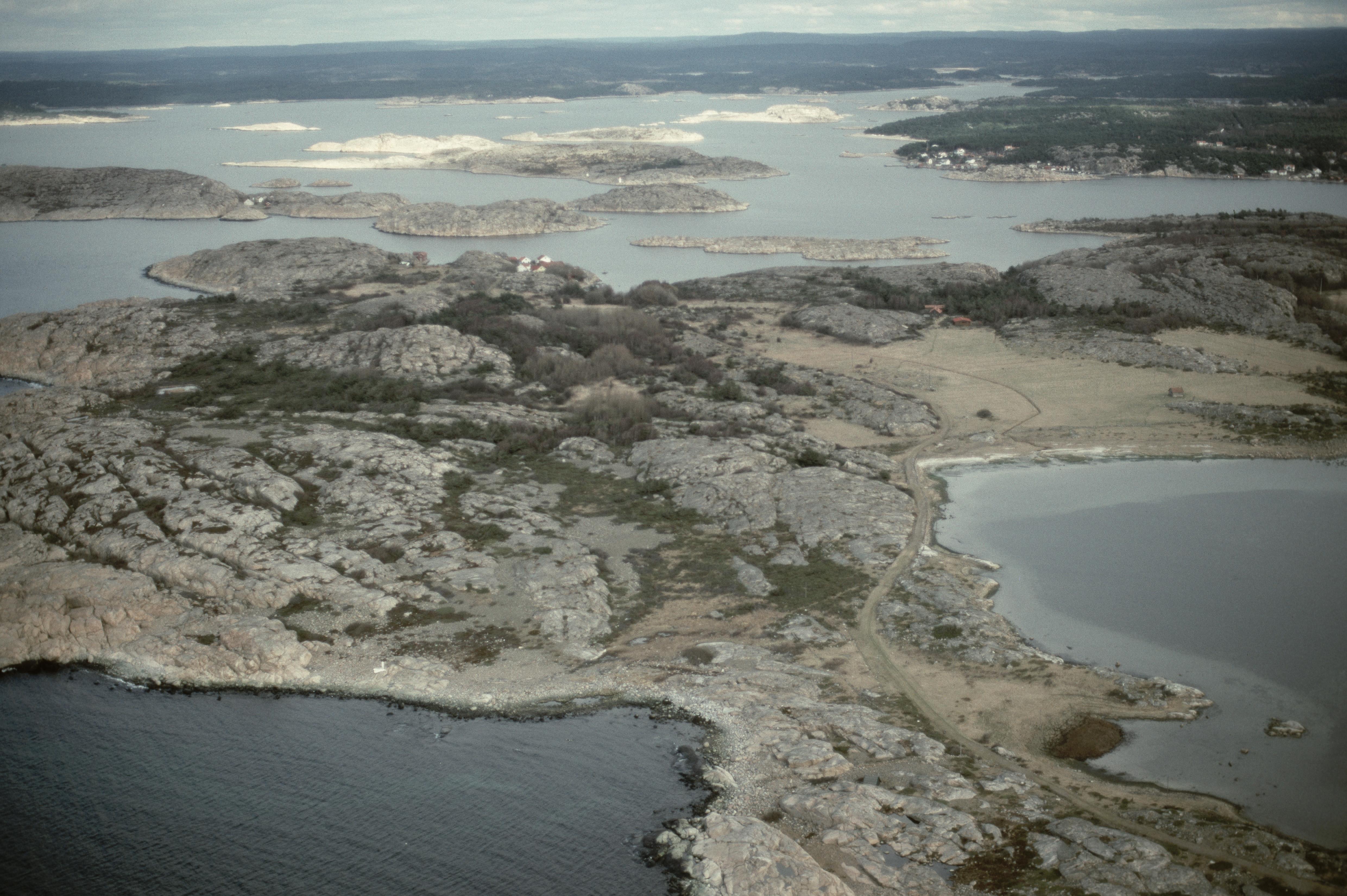 Beskrivning: Kosterhavet, östra delen. Lindön med labyrint RAÄnr Tanum 1179:1 vid bildens mitt. Naturreservatet Kalvö - Lindö - Trossö. Bilden är tagen mot (väderstreck): NNO