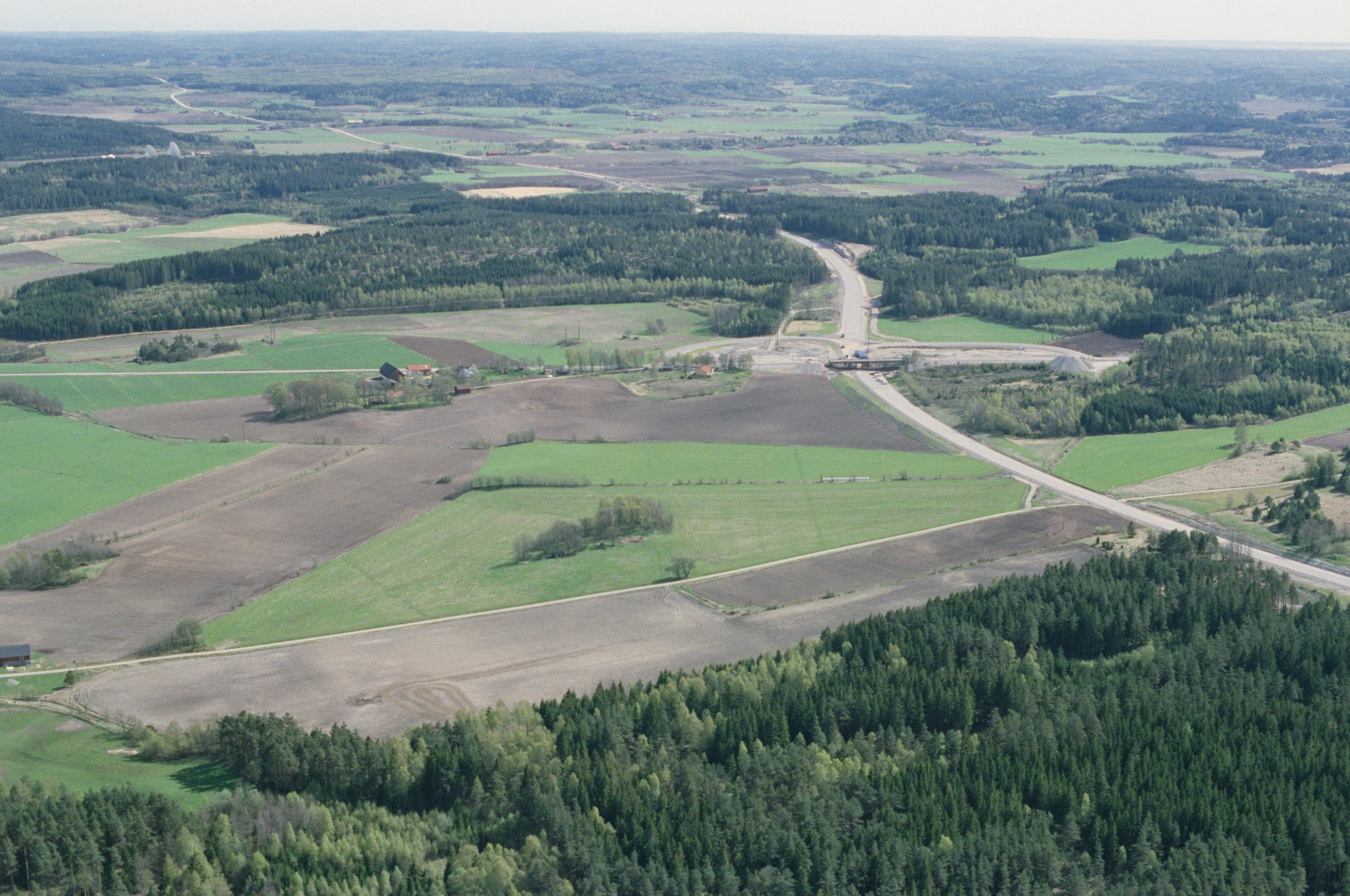 Beskrivning: Bygge av väg E6 vid Backa. Boplats RAÄnr Tanum 2135 m.fl. vid bildens mitt. Bilden är tagen mot (väderstreck): S