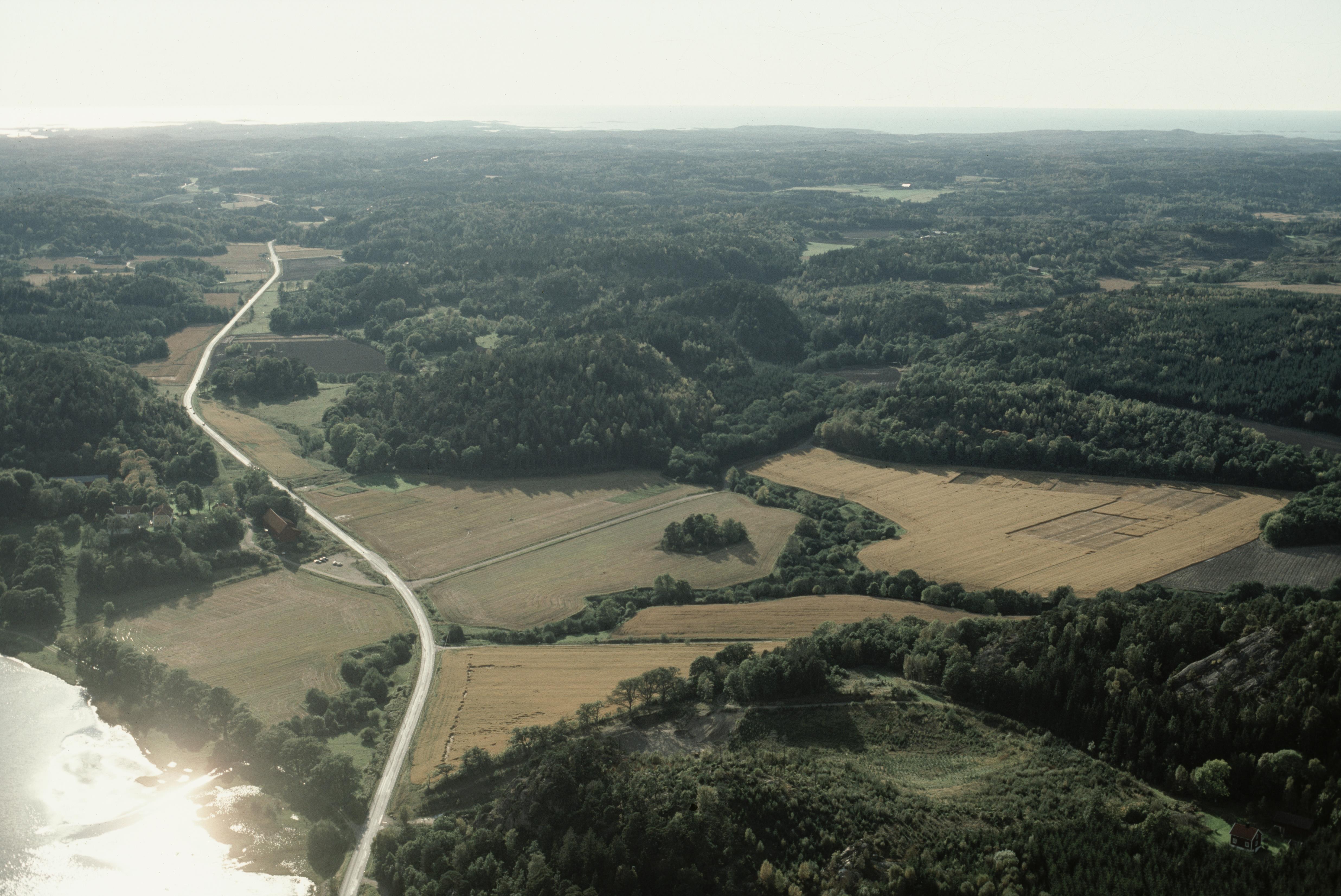 Beskrivning: Anmärkning (övrig): Riksintresse-nr/namn: O38 - Åby. Socken: Tossene. Motivering: Herrgårdsmiljö, med strategiskt läge i det inre av Åbyfjorden, där säteribebyggelse med 1700-tals prägel tillsammans med rika förhistoriska och historiska lämningar tydligt speglar utvecklingen av det agrara kulturlandskapet inom ett bohuslänskt storgods. (Fornlämningsmiljö). - Uttryck för riksintresset: Stenåldersboplatser, två stenkammargravar, ett flertal gravrösen och monumentala hällristningar, manbyggnad troligen från 1720, flygelbyggnader från slutet av 1700-talet liksom eventuellt en stor lada, övriga ekonomibyggnader från 1800- och 1900-talet, historiska lämningar samt ryggade åkrar och allé som visar säteriets tidigare (…) Texten i detta fält har förkortats vid migrering till e-arkivet. Se filbilagan extra.xml för fullständig information under note_archivist. Beskrivning: Åby herrgård / säteri. Byggnadsminne RAÄnr Tossene 335:1. Fornlämningsområde vid gränsen mot Bro socken i Åbyfjorden. Lundebäcken och vägmärke RAÄnr Tossene 687:1. Bilden är tagen mot (väderstreck): SV Fotosyfte: Flygbildsdokumentation