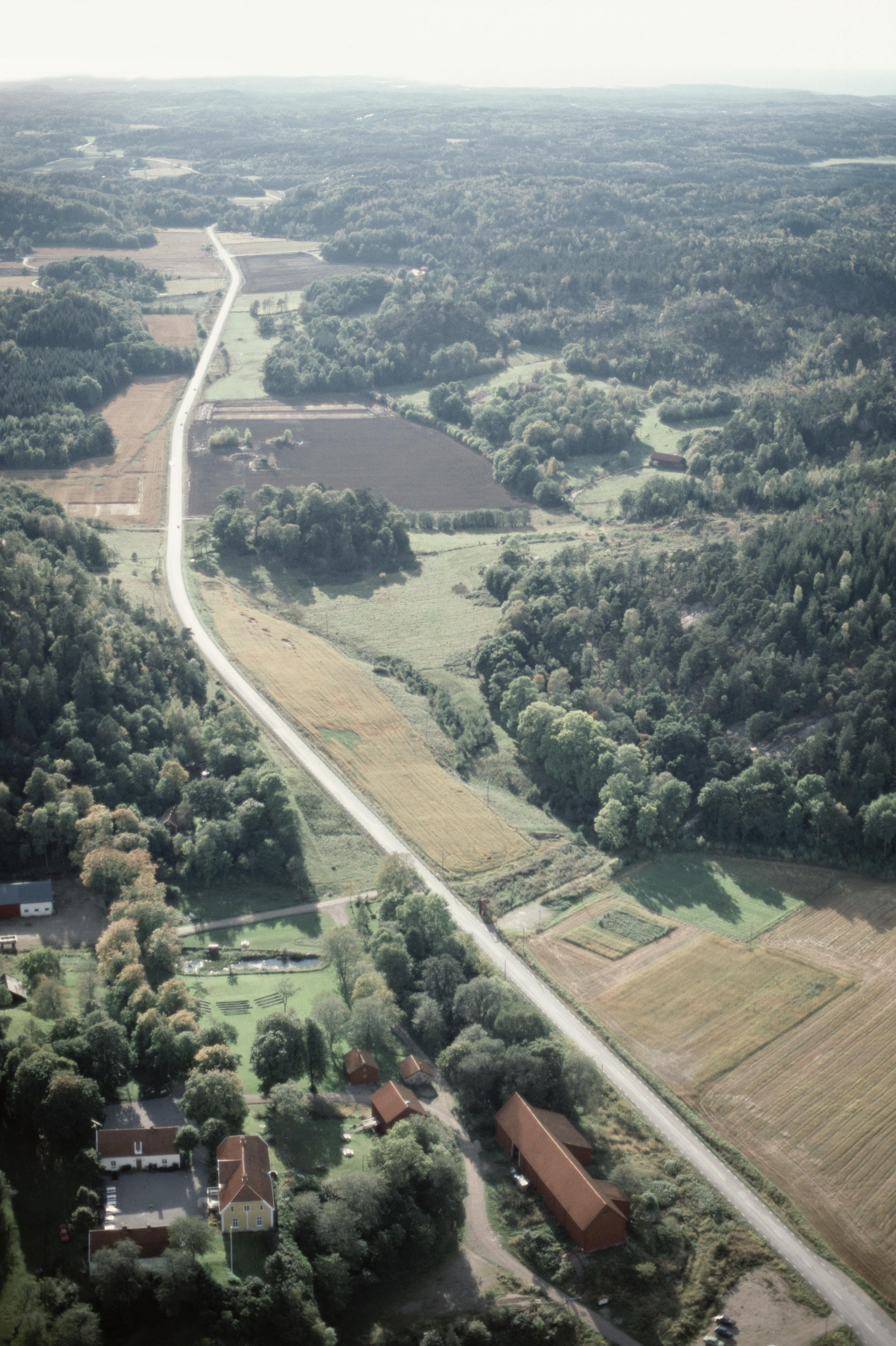 Beskrivning: Åby herrgård / säteri. Byggnadsminne RAÄnr Tossene 335:1. Fornlämningsområde vid gränsen mot Bro socken i Åbyfjorden. Vägmärke RAÄnr Tossene 687:1. Bilden är tagen mot (väderstreck): SV