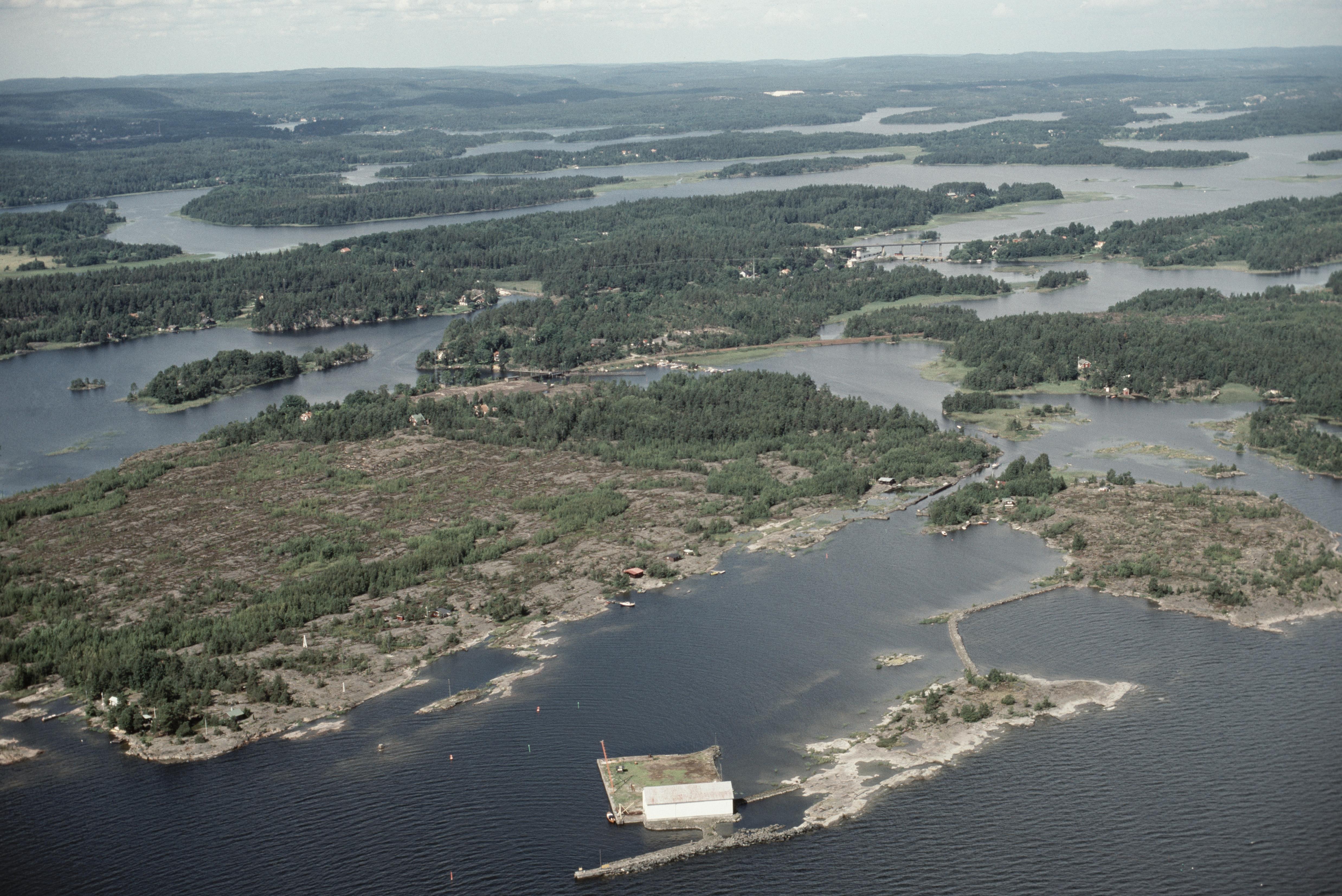 Beskrivning: Dalbosjön i sjön Vänern. I bildens nedre del Långö, Musholmen och Musdragsholmen. I bildens övre del socknet Skållerud och Dalslands kanal vid Köpmannebro. Bilden är tagen mot (väderstreck): NNV