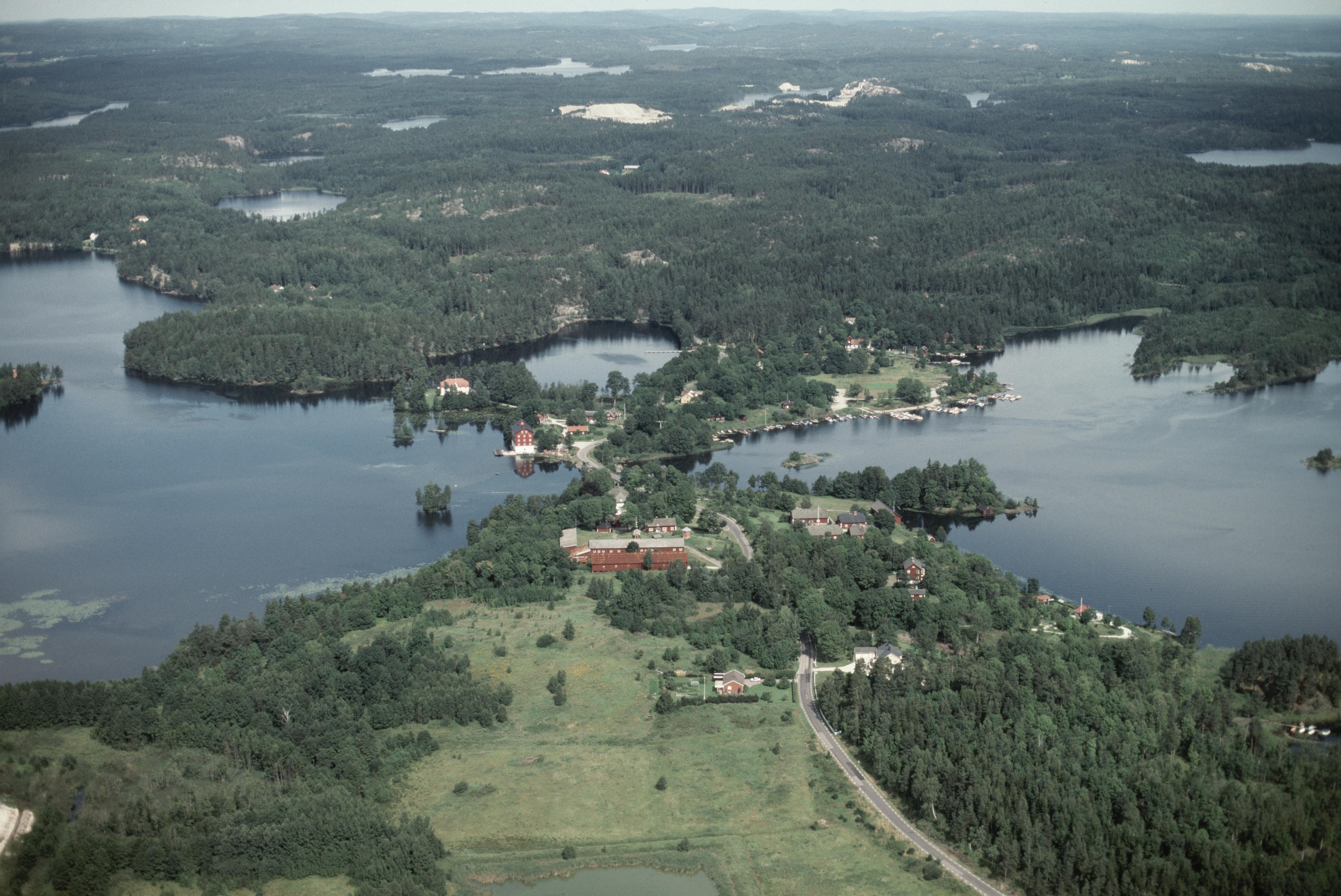 Beskrivning: Upperuds bruk öster om tätorten Åsensbruk vid Dalslands kanal mellan sjöarna Övre Upperudshöljen i väst och Spången i öst. Vid bildens mitt Upperuds herrgård RAÄnr Skållerud 41:1. Bilden är tagen mot (väderstreck): N