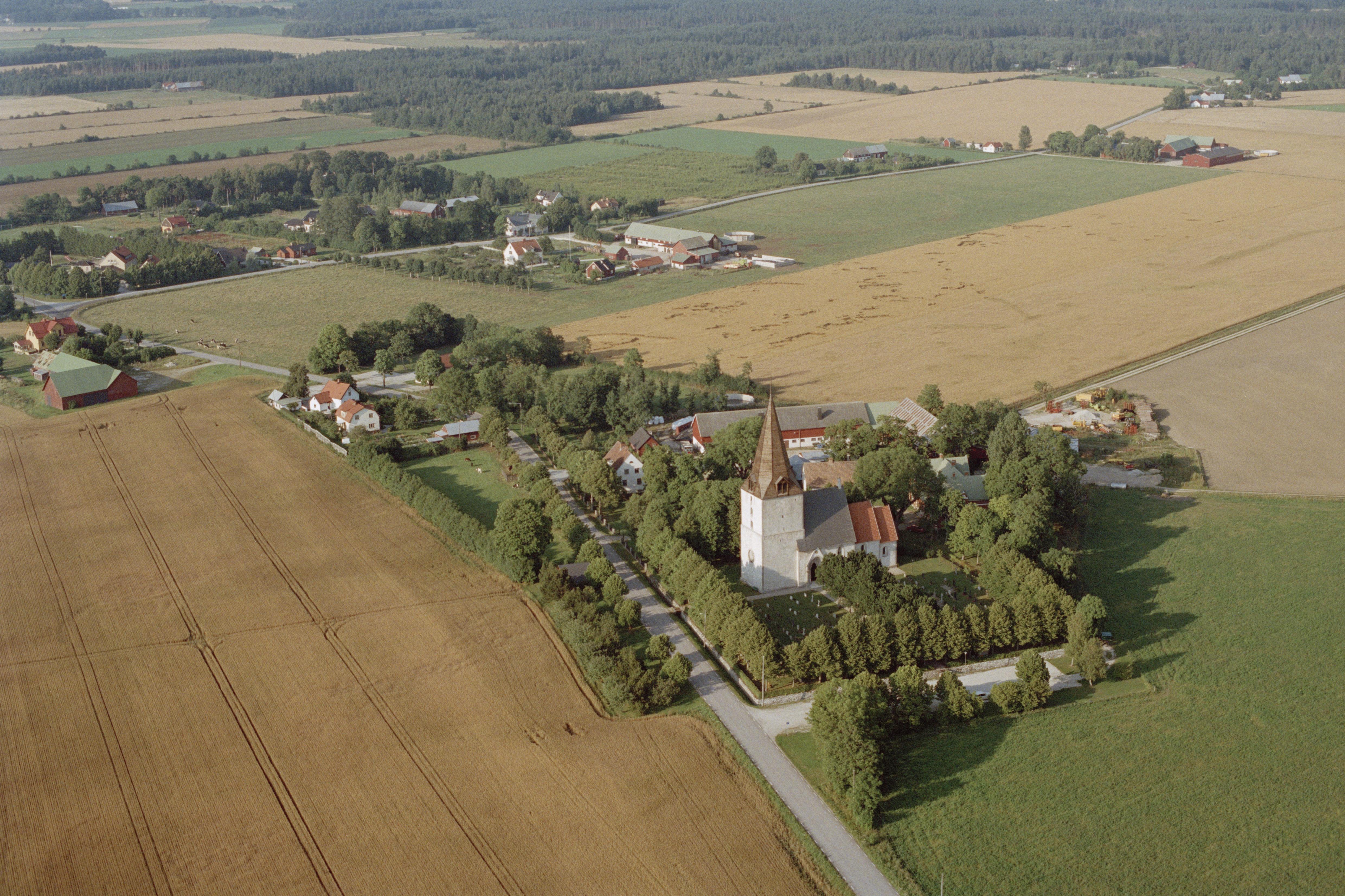 Beskrivning: Anmärkning (övrig): Riksintresse-nr/namn: I59 - Gotlands medeltida kyrkomiljöer. Socken: (div). Motivering: De 92 medeltida kyrkorna och fyra ödekyrkorna i sten från 1100-, 1200- och 1300-talen representerar romansk och gotisk byggnadskonst med såväl västliga som östliga influenser i ett komprimerat men påkostat utförande sammanfört i en karaktäristisk gotländsk byggnadsstil där arkitektur, sten- och träskulptur, mural- och glasmåleri vittnar om mycket hög hantverksskicklighet. (Kyrkomiljö). - Uttryck för riksintresset: Kyrkorna är i det närmaste intakt bevarade med få tillägg från senare århundraden. Till kyrkorna hör kyrkogårdar med murar och stigluckor från samma tid, i vissa socknar finns kastaler, prästgå(…) Texten i detta fält har förkortats vid migrering till e-arkivet. Se filbilagan extra.xml för fullständig information under note_archivist. Beskrivning: Barlingbo kyrkby. Till höger om bildens mitt Barlingbo kyrka. I kyrkan gravvård RAÄnr Barlingbo 15:2. Bilden är tagen mot (väderstreck): NO Fotosyfte: Flygbildsdokumentation