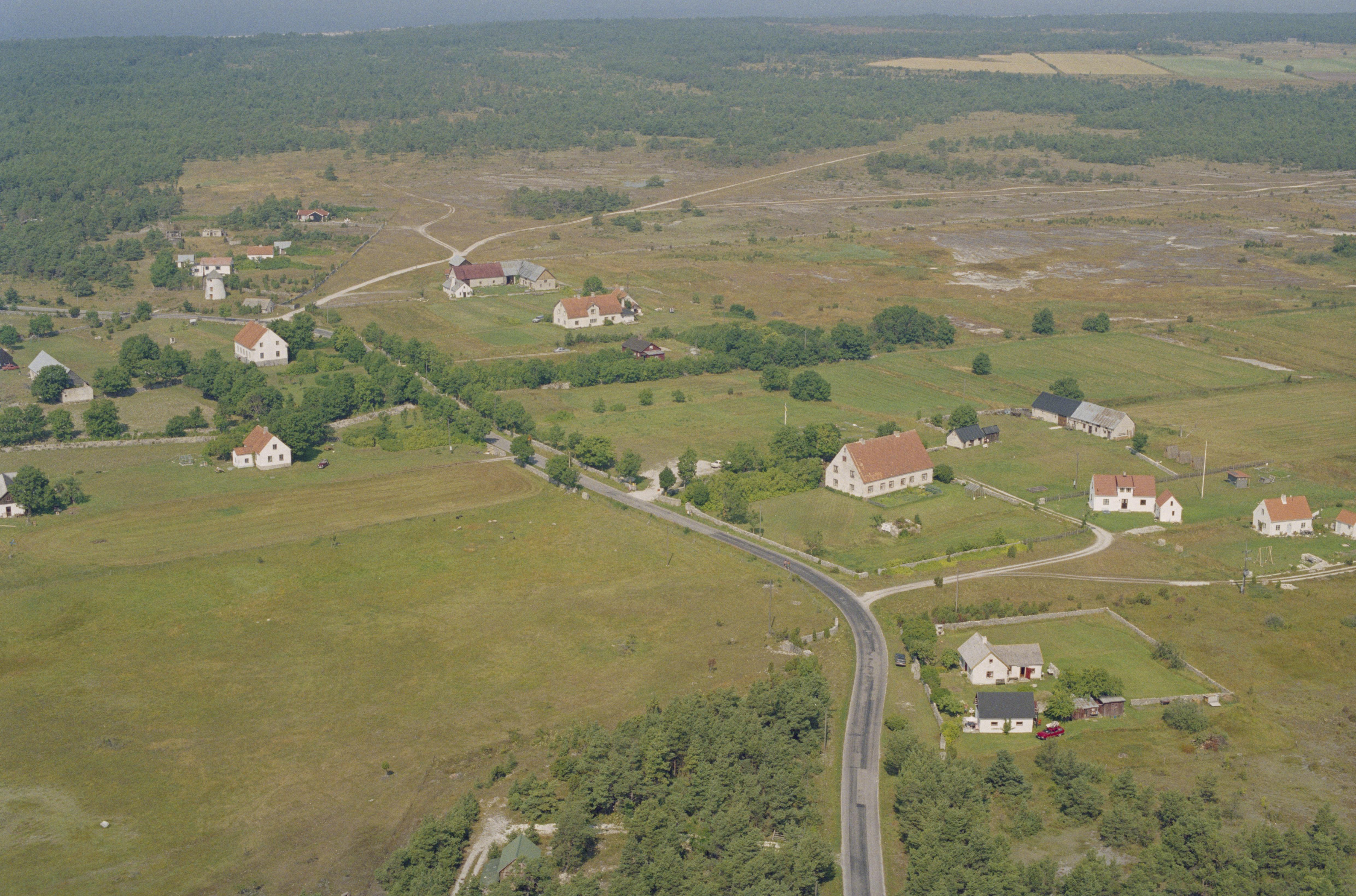 Beskrivning: Lauters by vid Lautervik. Uppe i bildens högra hörn område med skeppssättning och stensättningar RAÄnr Fårö 14:1-3 m.m. Bilden är tagen mot (väderstreck): N