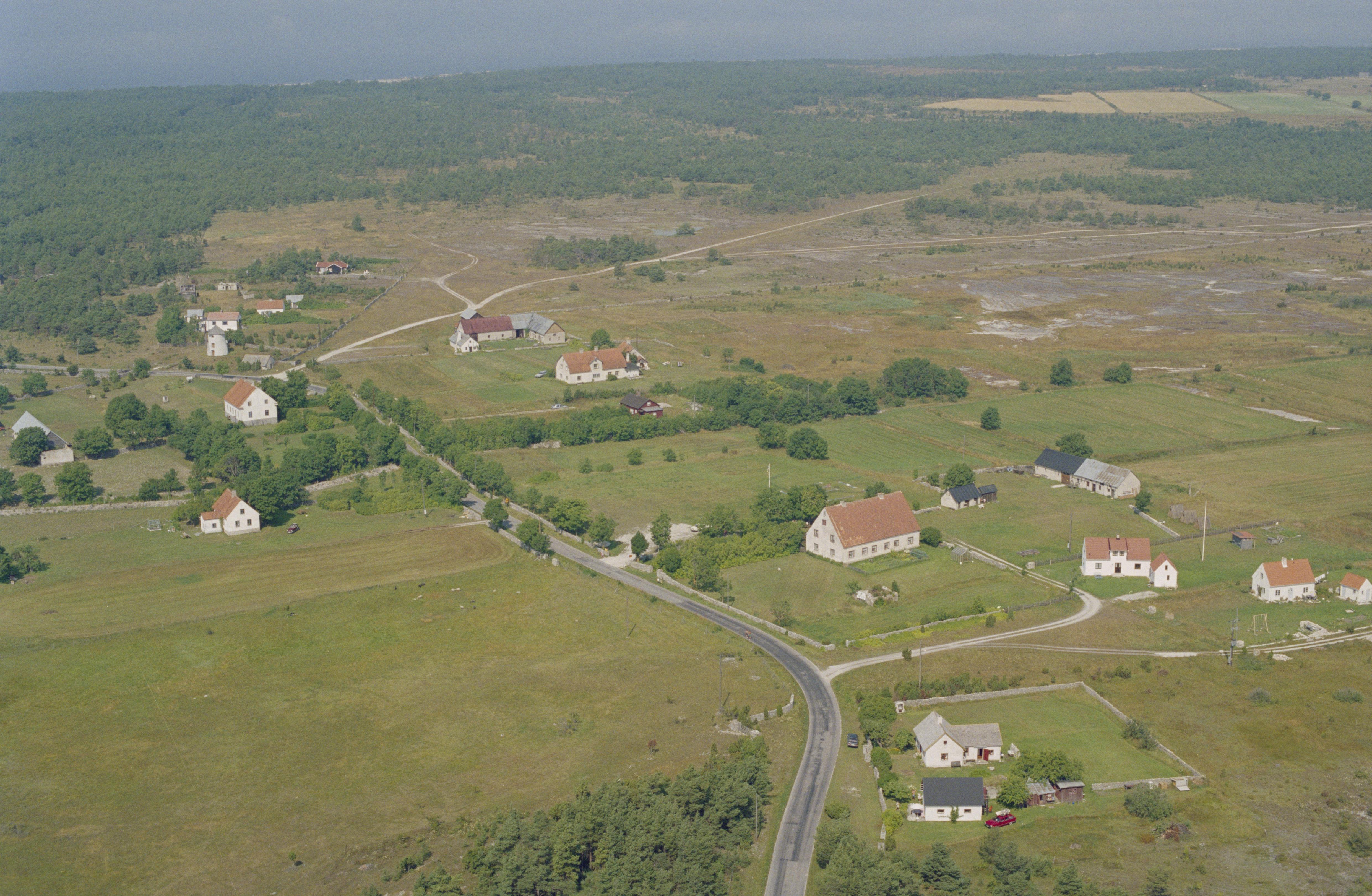Beskrivning: Lauters by vid Lautervik. Uppe i bildens högra hörn område med skeppssättning och stensättningar RAÄnr Fårö 14:1-3 m.m. Bilden är tagen mot (väderstreck): N