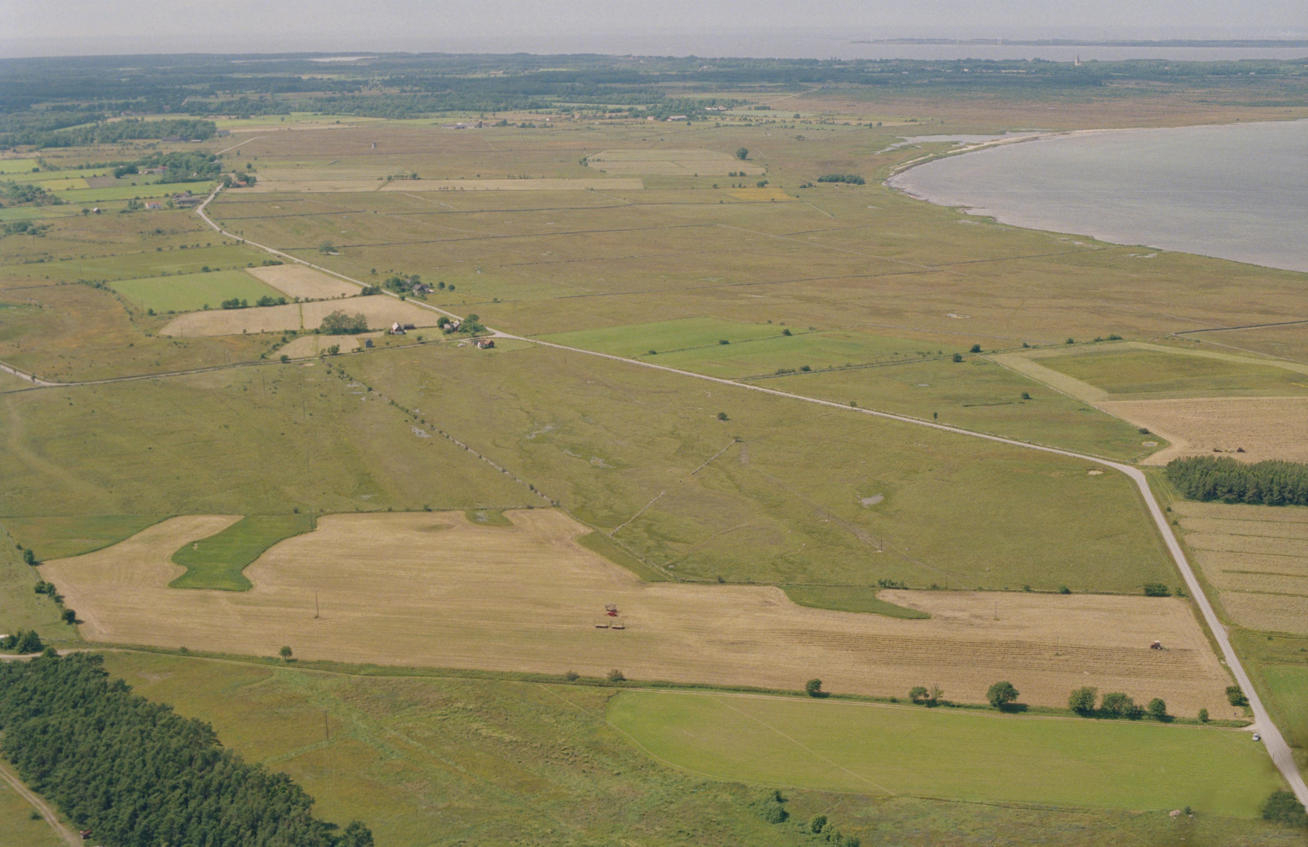 Beskrivning: Anmärkning (övrig): Riksintresse-nr/namn: I41 - Öja. Socken: Öja. Motivering: Öppet odlingslandskap med förhistorisk bosättnings- och brukningskontinuitet med välbevarad bebyggelse och omfattande stenmurssystem i flackt och öppet kustlandskap.(Fornlämningsmiljö, Gårdsmiljö). - Uttryck för riksintresset: Fossil åkermark från äldre järnålder. Bebyggelselägen och hamn från vikingatid samt slipskårestenar. Medeltida kyrka, kastal, prästgårdsruin, husgrund och grindstolpar. Stora gårdar med stenhus och bodar från 1700- och 1800-talet, bla med flistak. Ladugårdar med agtak. - I området ingår även: Ett antal sandstensbrott efter tidigare brytning. Fiskelägen med flistaksbodar. [Texten uppdaterat av Riksantikvarieämbe(…) Texten i detta fält har förkortats vid migrering till e-arkivet. Se filbilagan extra.xml för fullständig information under note_archivist. Beskrivning: Nordvästra området på näset Faludden. Till vänster om bildens mitt grav RAÄnr Öja 61:1. Uppe till vänster gårdarna Ronnarve, Burge, Sigfride, Barkarve, Lasses m.fl. Öja kyrka till höger i bildens övre kant. Bilden är tagen mot (väderstreck): NV Fotosyfte: Flygbildsdokumentation